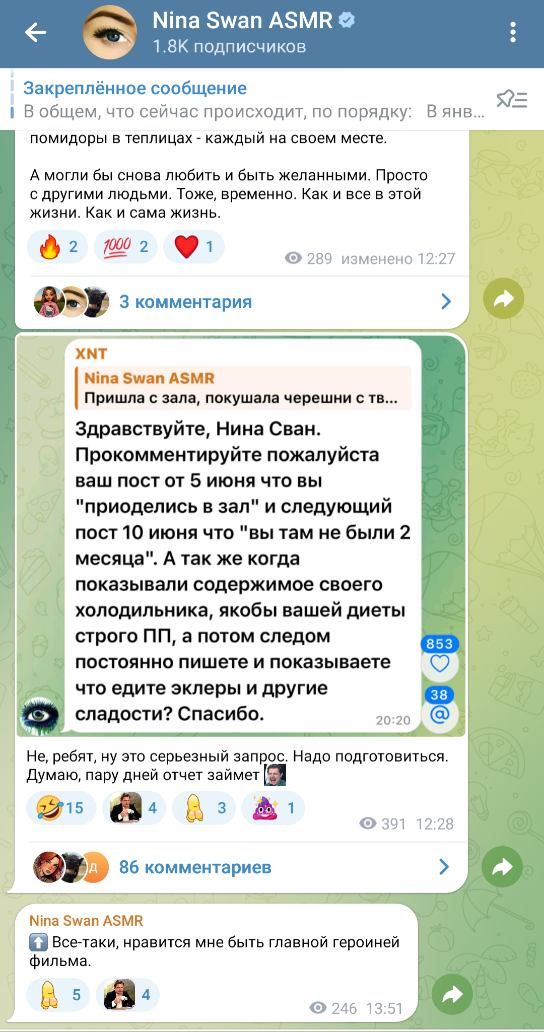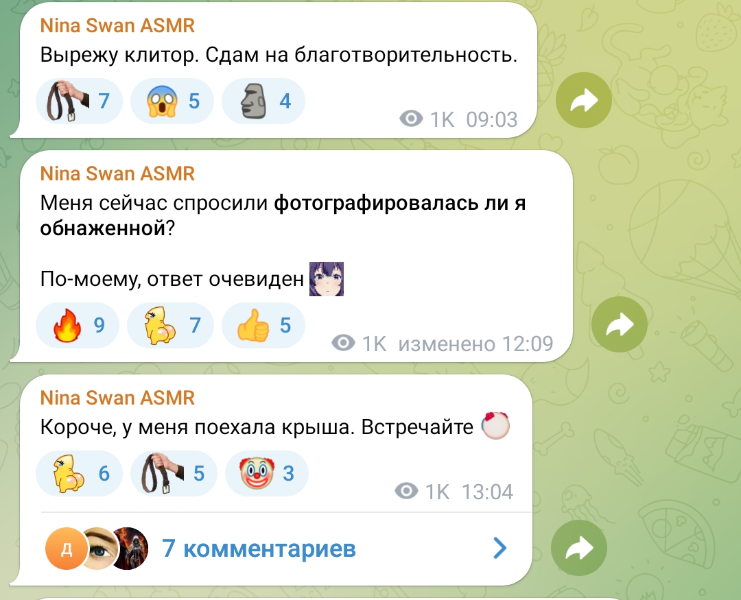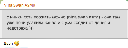 с нинки хоть поржать можно (nina swan asmr) - она там уже почи удалила канал и с ума сходит от денег и недотраха )))