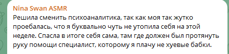 Ладно, пока асмр треды мертвы и Нинка читает двач, посмотрим на это. Нина хотела стать голливудской звездой и ей дали родители всевозможные ресурсы для этого, но оказалось, что мамка виновата, что она спилась, снарокманилась и скакала по хуям вместо исполнения мечты. А тут еще и её психуёлог оказался виноват, что она тупая и платила бешенные бабки очередному психуёлогу. Пу пу пу. жду пост что во всем виноваты эклеры и поэтому она жирная.