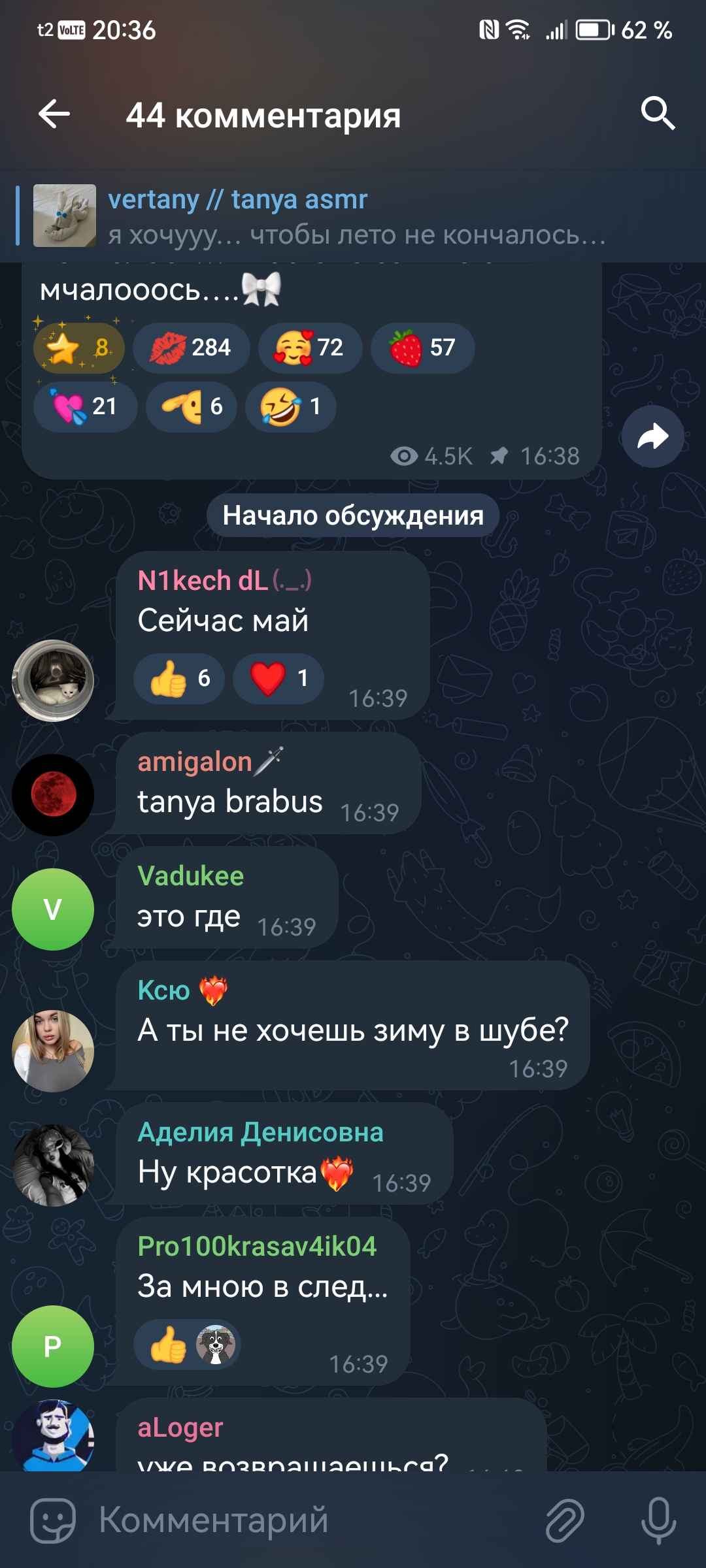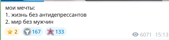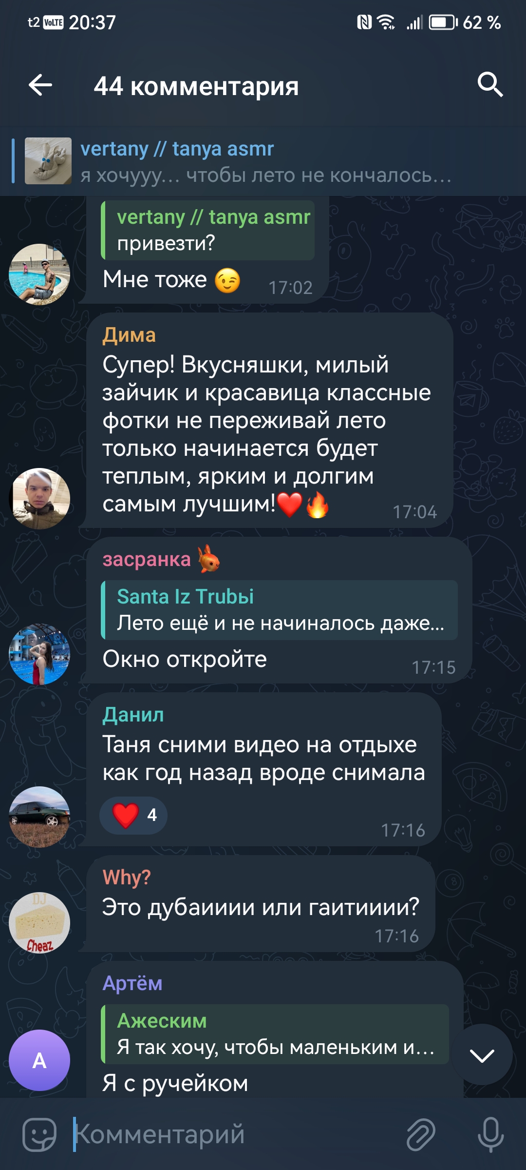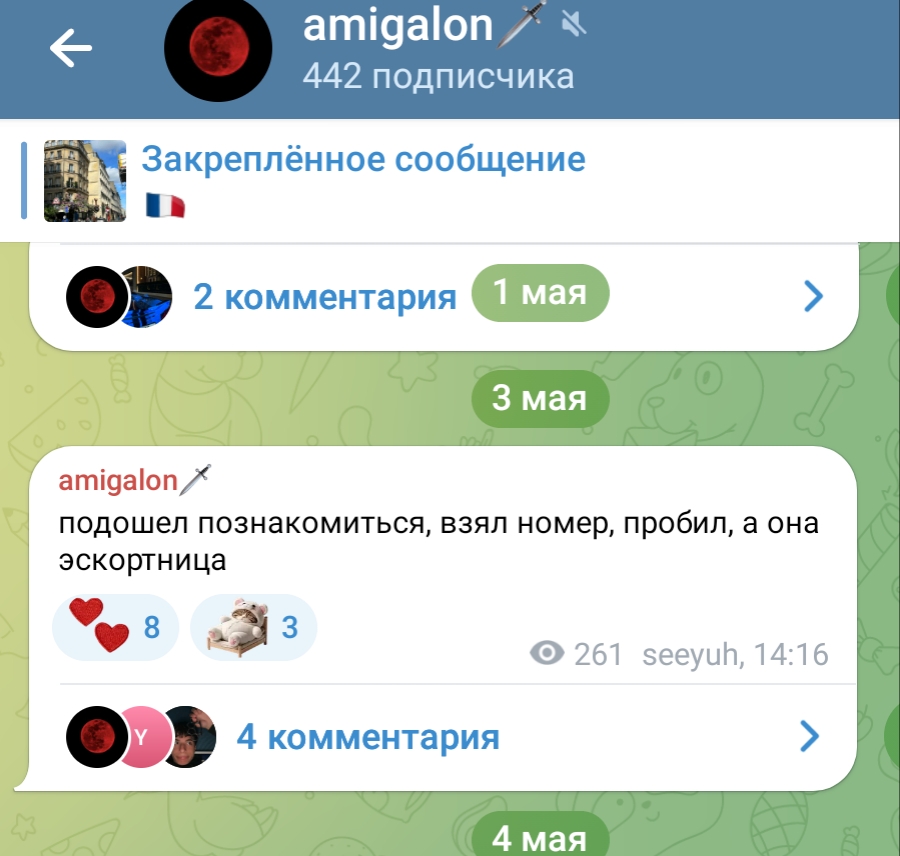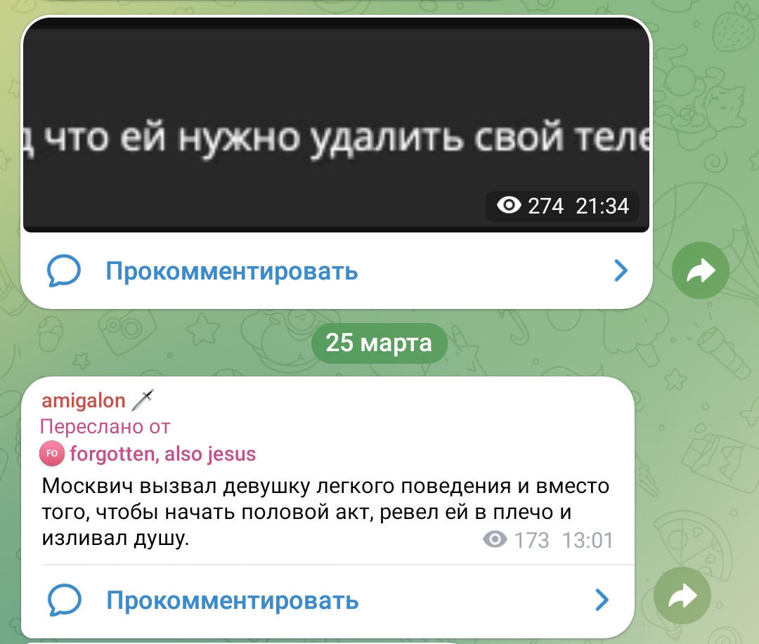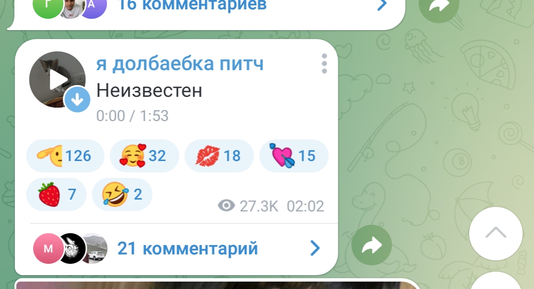 2. телеграм канал чтобы выёбываться комментарии чтобы обсуждать, то есть по логике этого человека надо тупо писать о вам охуеть Таня пиздец красивая и всё (и Таня и димка лайкнули - ну тогда закрой коммкнты7и ты донать ей вне стрима ёпта)