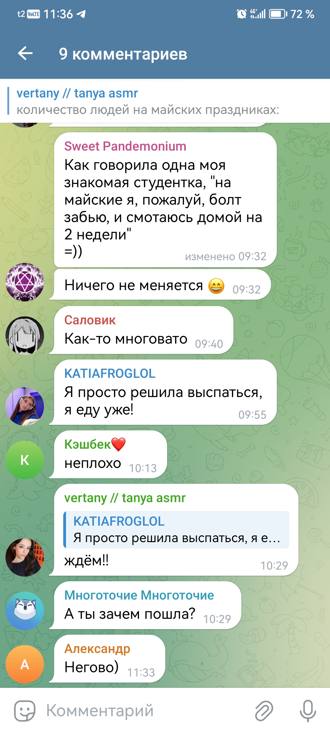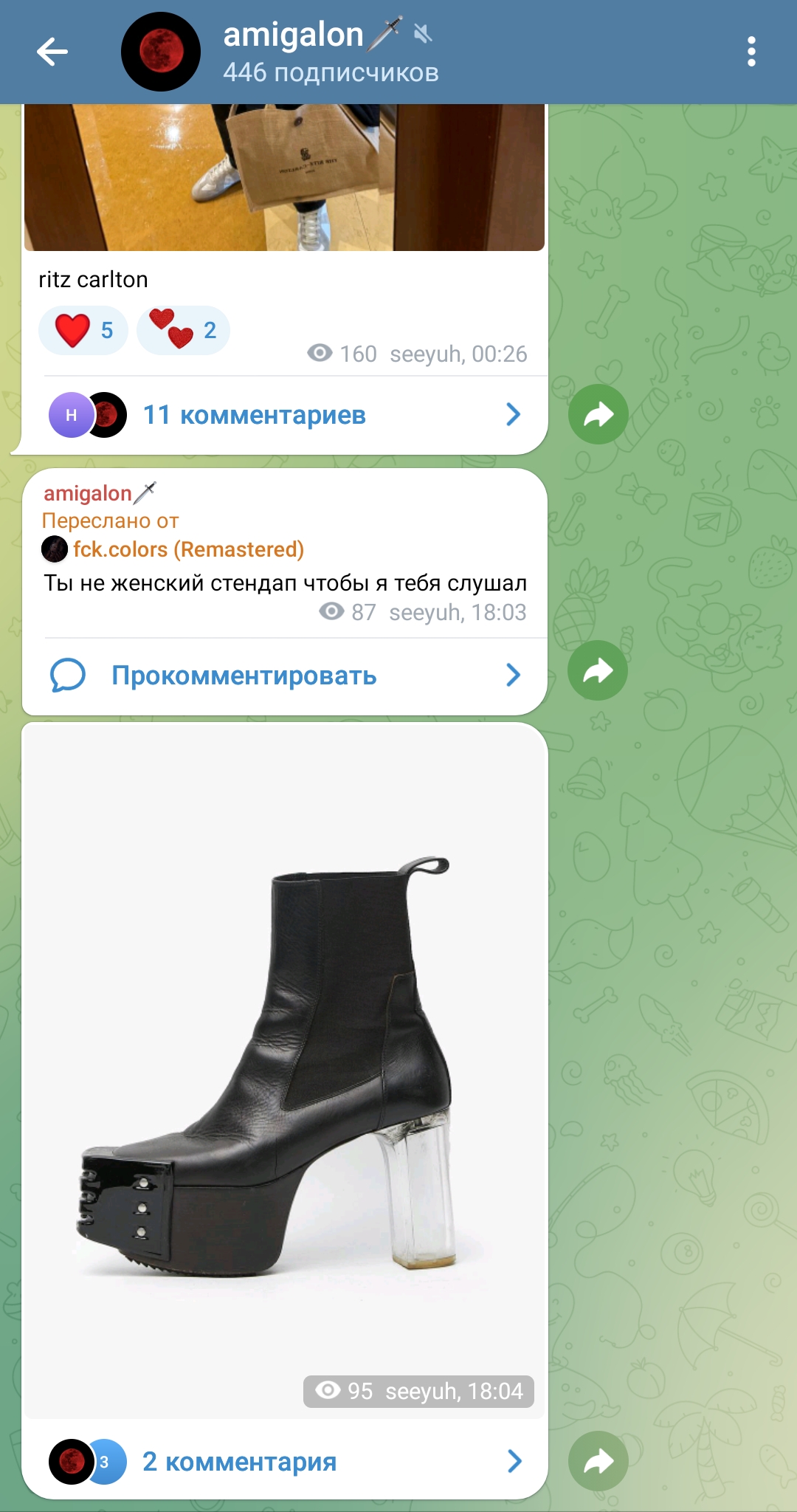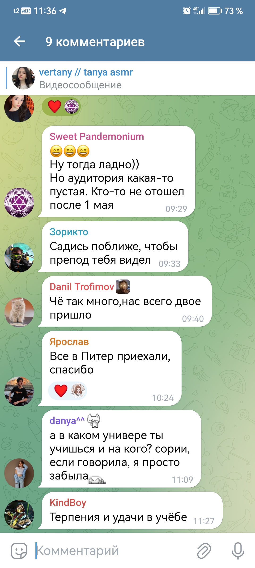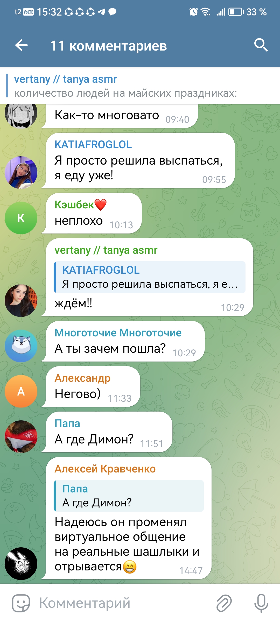 2. телеграм канал чтобы выёбываться комментарии чтобы обсуждать, то есть по логике этого человека надо тупо писать о вам охуеть Таня пиздец красивая и всё (и Таня и димка лайкнули - ну тогда закрой коммкнты7и ты донать ей вне стрима ёпта)