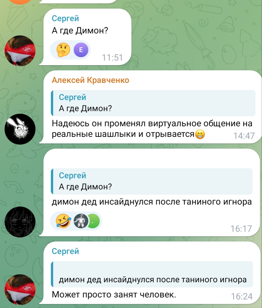Жалко Димона, я раньше таким же Димоном был только у стримерши на твиче, донатил больше, чем получал в месяц, тратя сбережения. Как ни вспомню, в голове кринж до мозга костей, что-то вроде эмоциональной травмы. С ума сходил, когда внимание не получал, я все еще помню тот день, когда это все закончилось и я просто с облегчением вздохнул. Никому не желаю быть Димоном.. Живите реальностью, а не людьми с интернета