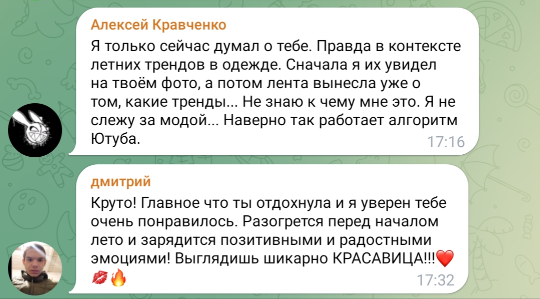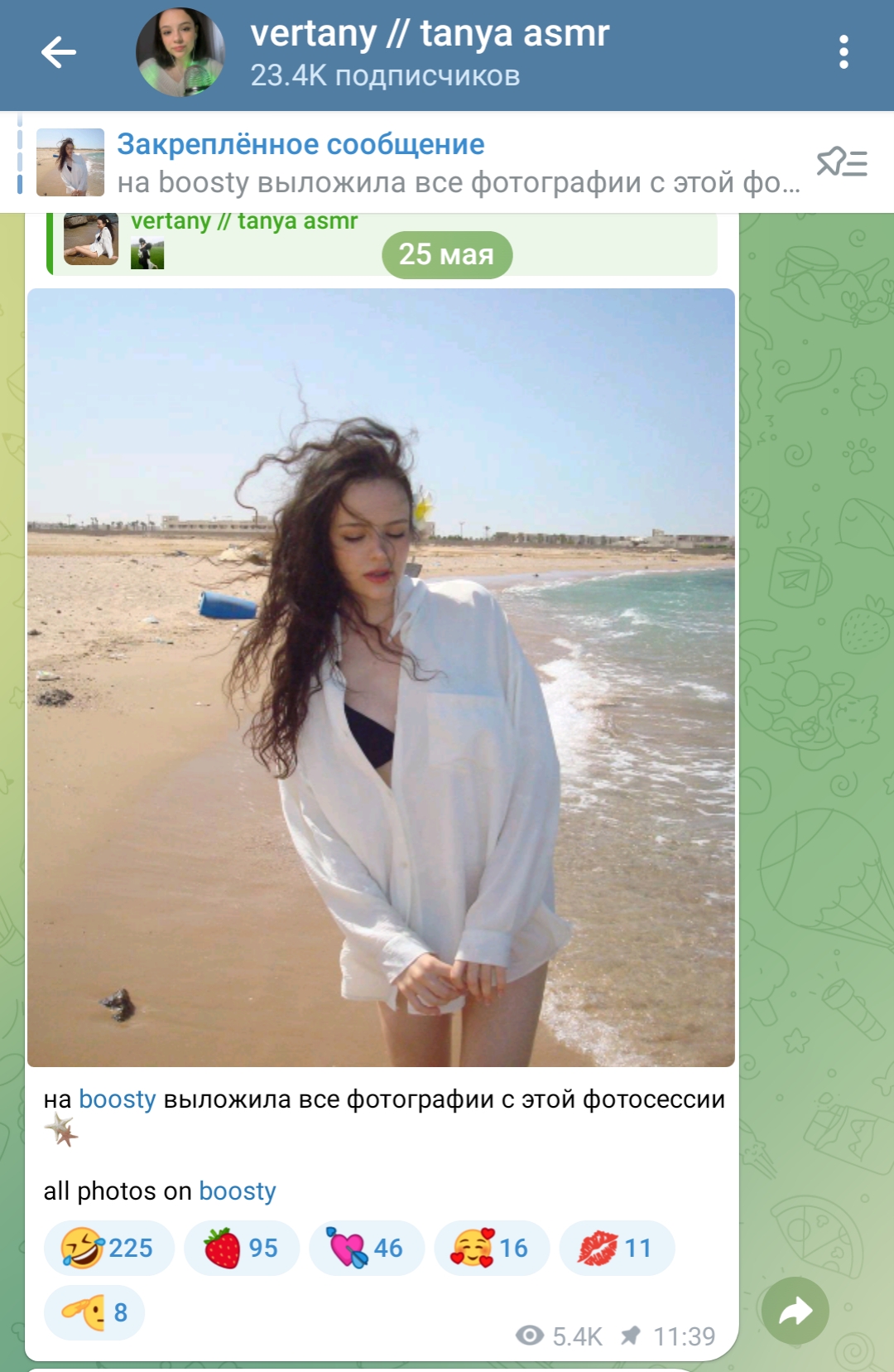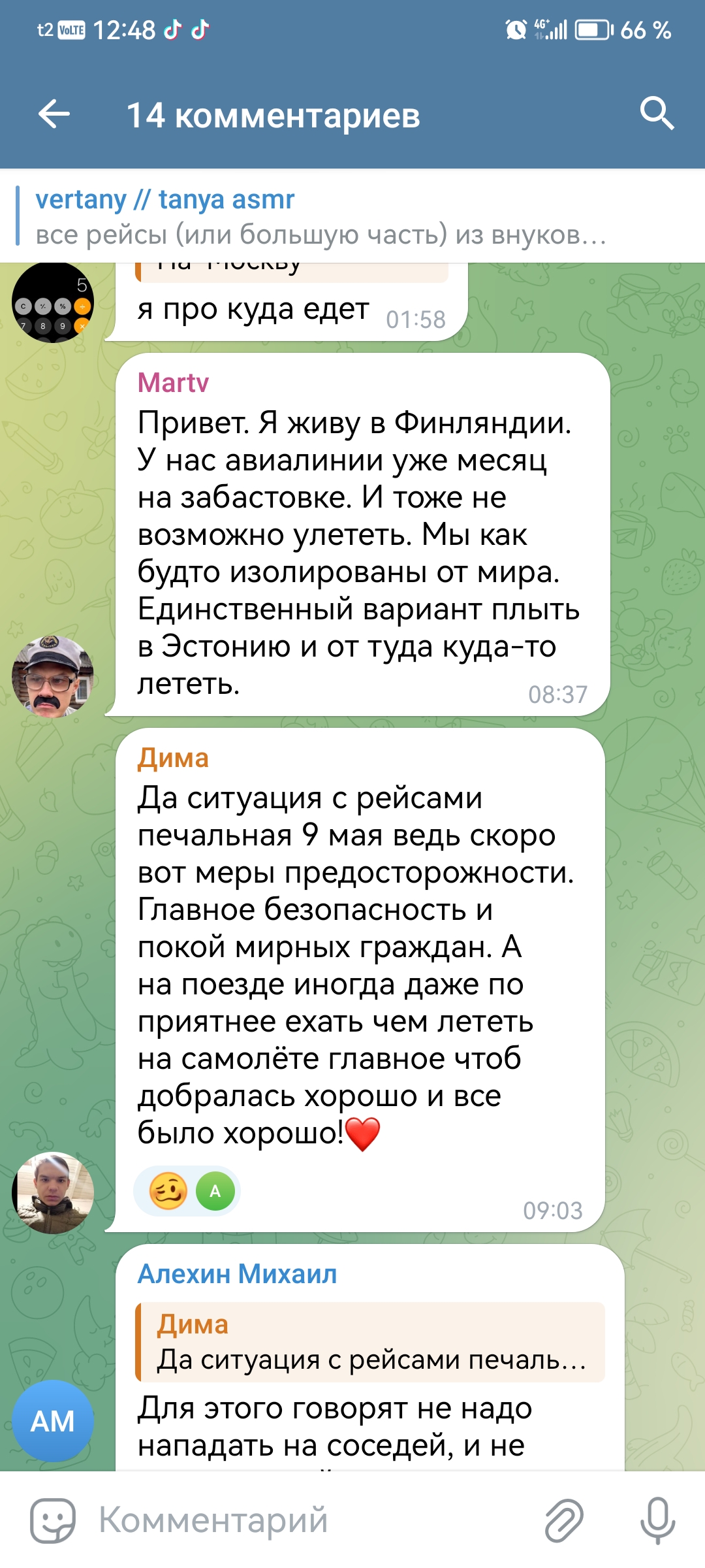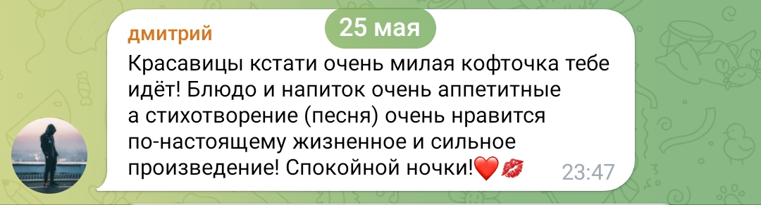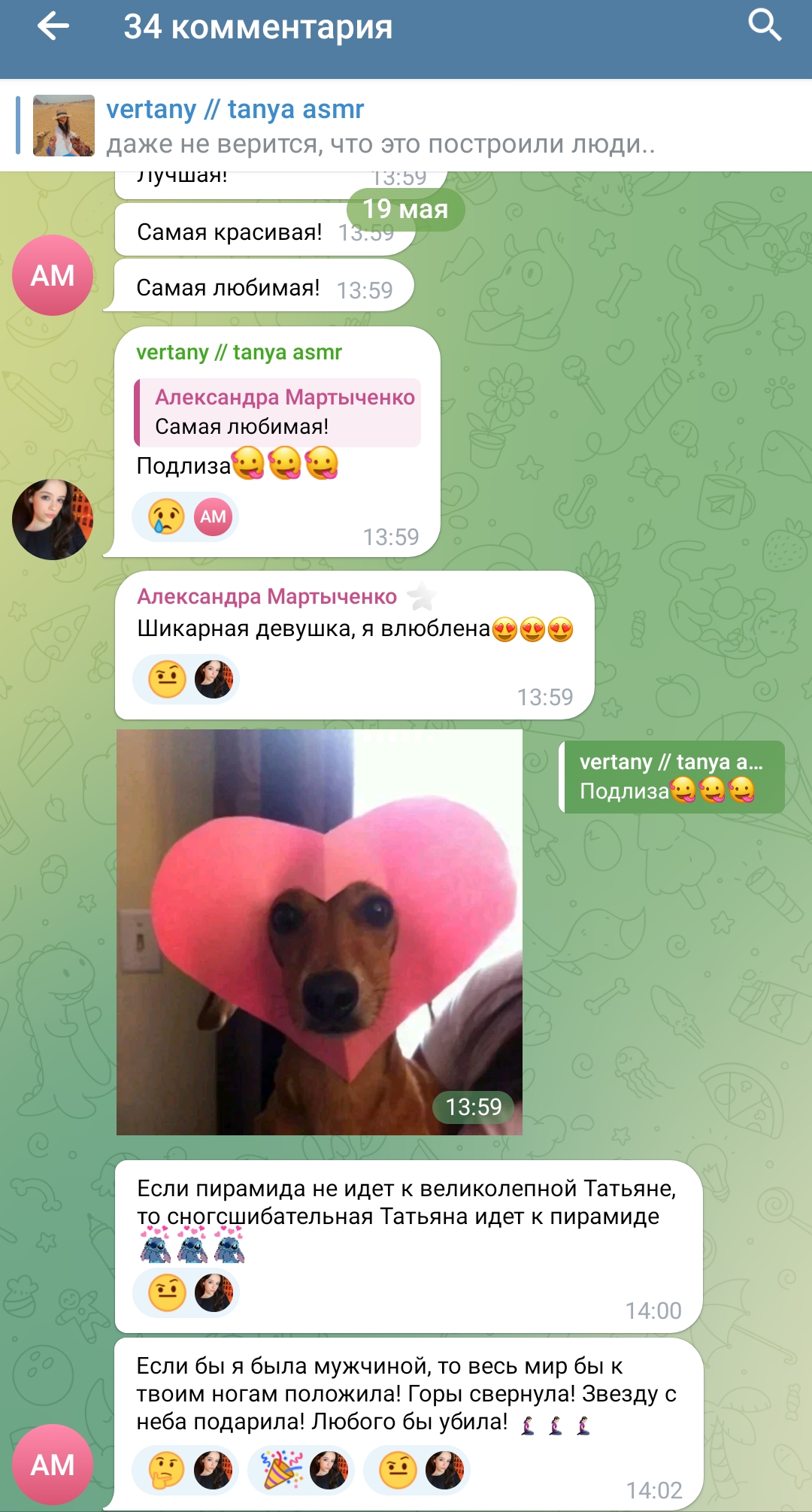очень всё конечно интересно, но смотришь на этих девок в их телеграм каналах, и понимаешь, почему Таня точечно отсеивает весь мусор из своего реала, у неё в отличие от этих девок нет задачи найти мужика побогаче ибо уже найдено всё, и огромный опыт общения с двачерами, миллионерами, димками, ну или ей тупо нравится лизать ложку и шептать хуйню всякую, тогда это её призвание реально, смотрите танин асмр, и ни о чём больше не думайте.