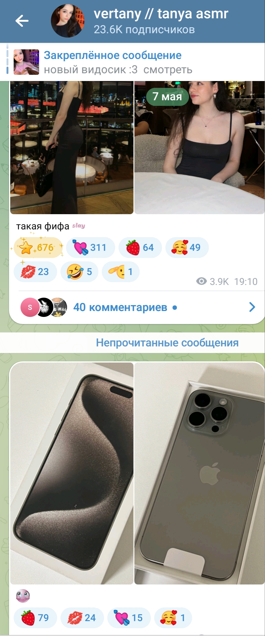 Таня странная и всевозможно старается быть скромной, макбук не покупает, айфон 15ый купила а не 16 (видимо что на карте было то и потратила разом, и мы опять не знаем про или про макс, сзади не показала специально видимо, эта информация для того чтоб понять насколько у неё реально длинные пальцы)