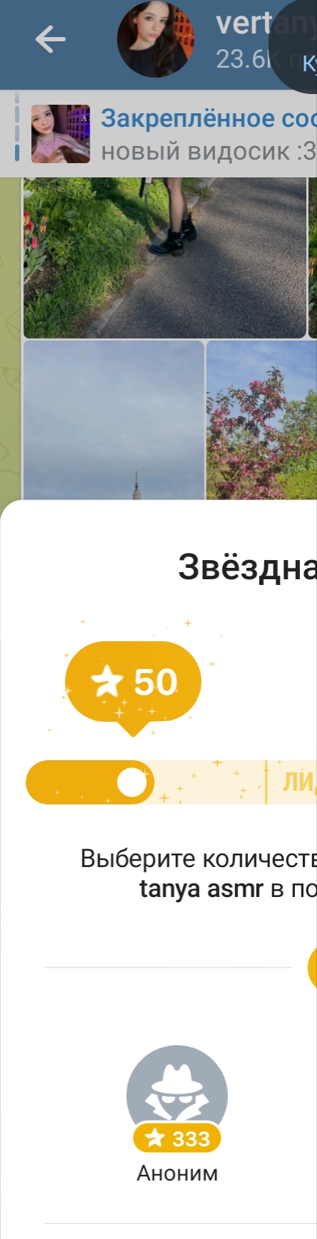 >>198529 просто занял нишу, другой звёзды кидает и ему некогда строчить и как бы бывшая ещё не ушла наверняка. помимо него несколько человек тоже сражаются донатами и звёздами (как бы для этого и придуманы подарки и звёзды в телеге - чтобы выделяться, без этого ты просто число просмотренных)