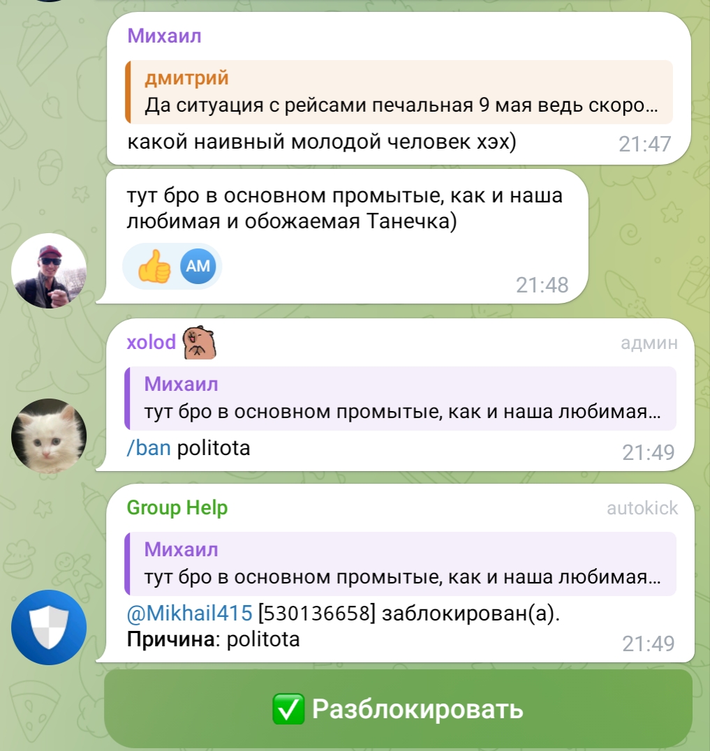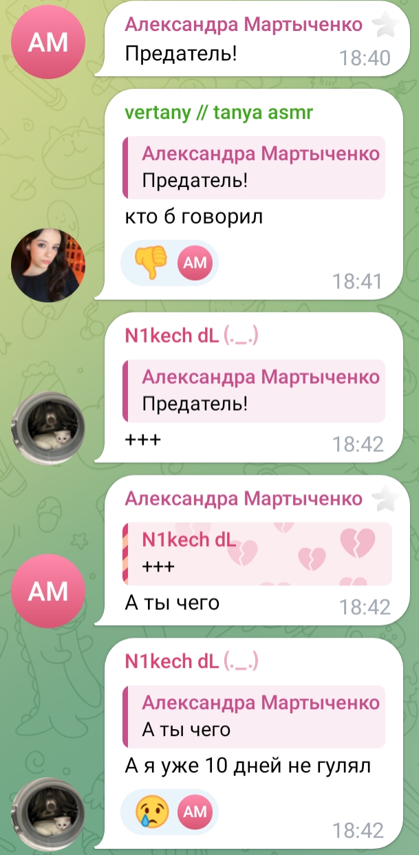 шлите Тане и Александре писюны свои в личку, теперь Таня постарела и не банит никого а даже лайки ставит, Саша будешь врачом проверять наши писюны по видео звонку в телеге? ну ты видимо тоже доброй стала наверное, старость в 18