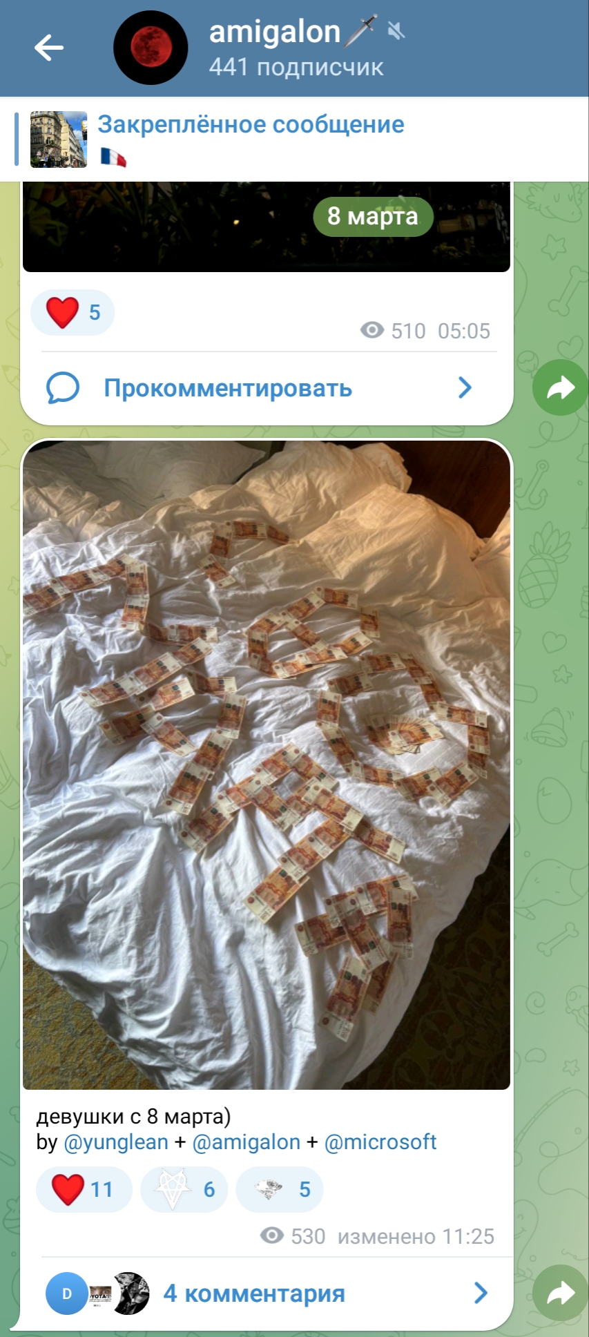 её парень уже начал удалять посты какие-то, закрой канал вообще тогда