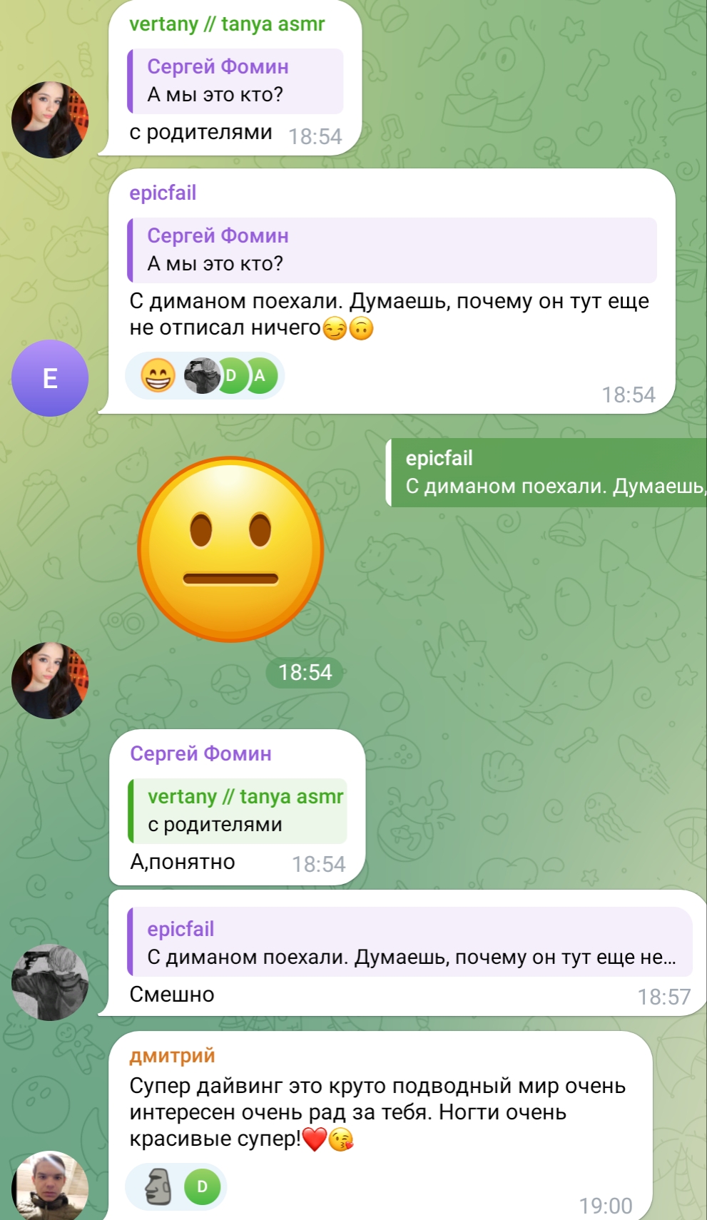 Ну то что Димка сменил аву значит скорее всего читает двач тут недавно начали просить его поменять И ржачно что Димка спиздил из инета фото крутых парней с закрытыми лицами, подумал что щас Танюха на него западе 😆😆😆😆 да Димон?