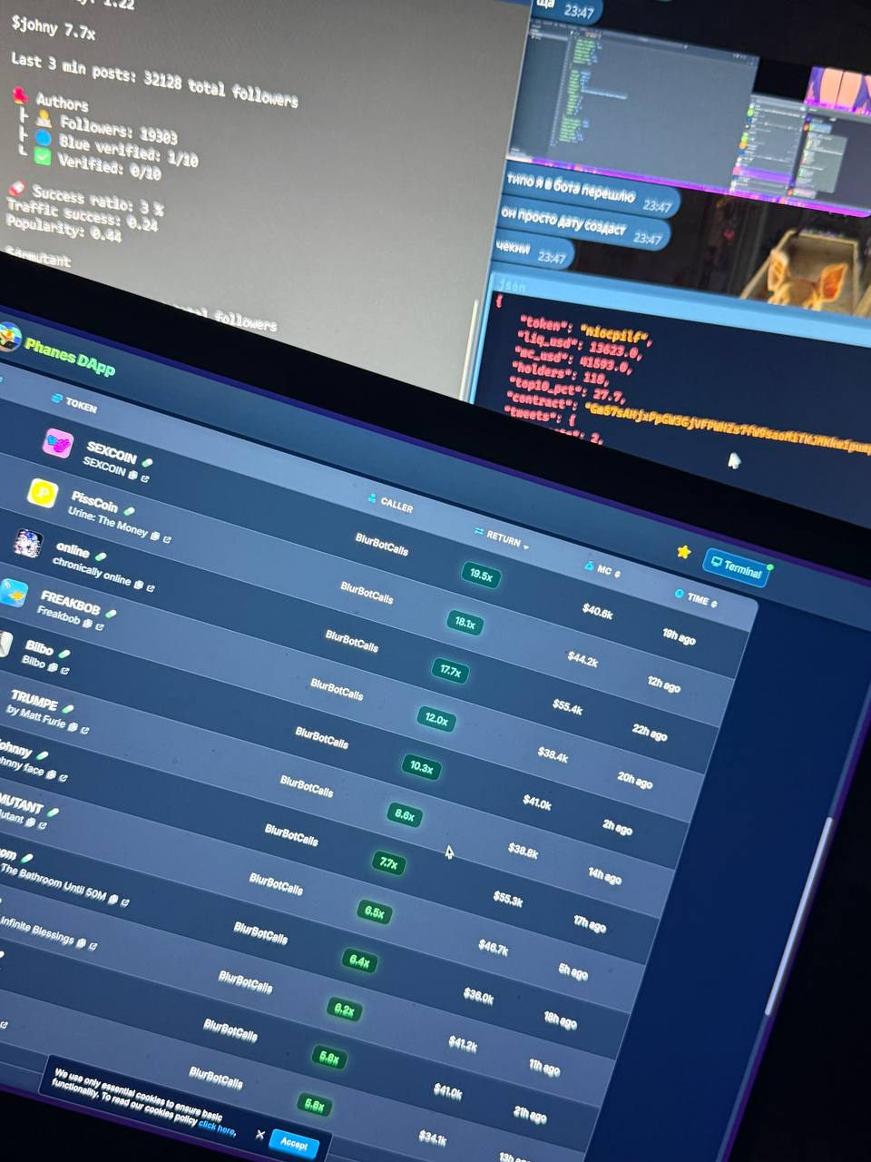 тлдр: blurbotcalls сказал "ух сук надо брать/продавать" и дальше написано сколько иксов ты бы сделал если ты бы последовал этому совету (коллу), например 19.5х 18.1х итд..
