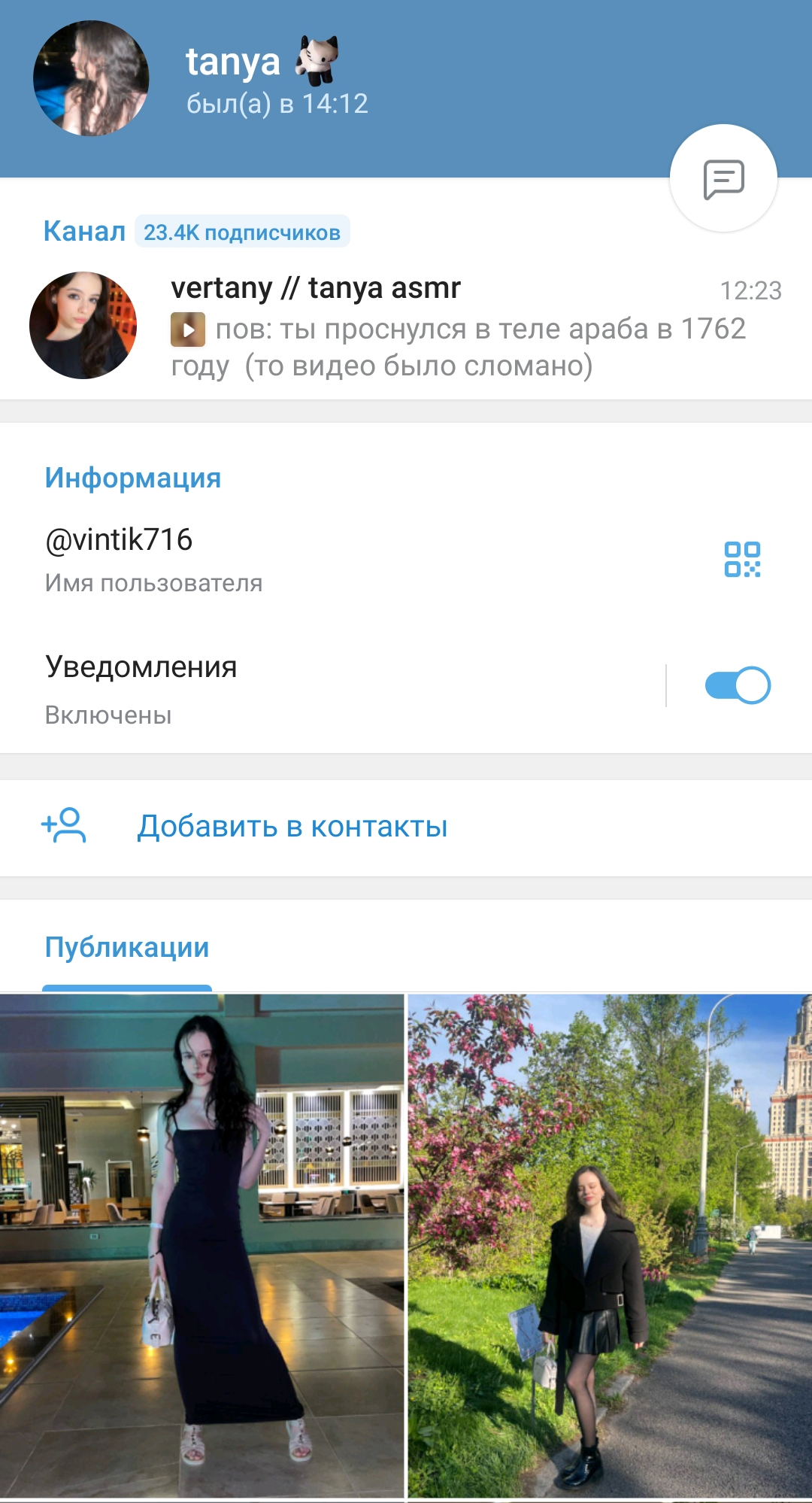 Отписка от тани продолжается. Хотя, я думаю что ей на эти подписки, отписки уже тоже давно плевать как и на коментарии. И на комментарии демона в часности ибо раньше она лайкала его даже спустя сутки после выложеного поста, сейчас же всё иначе. Вообще для тани телеграм, это теперь занятие второстепенное. Тоесть телега, так чисто для выебона. Так выложит какой нибудь спонтанный кружок по типу сегодняшнего или пост напишет когда на учёбе делать нефиг, и всё. Да и мы тут свами сидим и обсуждаем то что она сама и так знает. То есть, по сути мы все здесь занимаемся её пиаром. Или вы думаете она сама не понимает какая она блядь. Хм, сомневаюсь я.