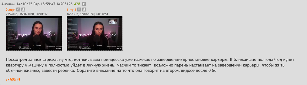 >единственное в чём я уверен, здесь за неё воюет - thundervision. nj 100% информация (он и донатит, он и стримы её записывает и разумеется полностью за неё) >>206291 +