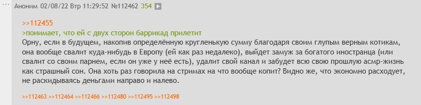 >>206364 Ну смотри, по поводу парня так и не ответила. Только о фото, хотя и ответила на то, что было выгодно. Оправдывась постоянно в комментах под видео, даже если типо «не за что» уже ставит себя в позицию виновной. Придумывать ничего не нужно о ней так, как они все делают это с типо хейтерами( напомню хейтеры все, кто с ней не согласен хоть в чем то. Таких мы баним) она сама дает повод о ней такое писать. Ведь не все закрывают глаза не не стыковки в словах и делах ее. Именно, Лена. На их совести, таких как ты. После что ты, что симпы твои все читают, зная что вас тут ждет. Переводить разговор о том и менять тему, как писали что-то 5 лет назад. Да мля много чего можно написать о ней. Чего они так бомбят на этот самый хейт, хотя хейта там процента 2 всего. Их почитать/послушать, так там можна реально подумать, шо двачевские на их фоне не такие уж и токсичные.