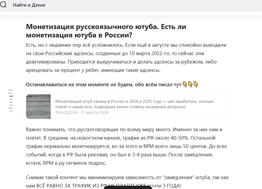 >>205814 Вы долбоебы, монетизацию никому не отключили, отключили только показ рекламы в рашке, всё, доходы на русскоязычных каналах упали только из-за того что, реклама не откручивается на зрителей из рф. И то сейчас доходы обратно выросли, потому что А куча людей съебалось из рашки и Б ещё большая куча сидят с ВПН
