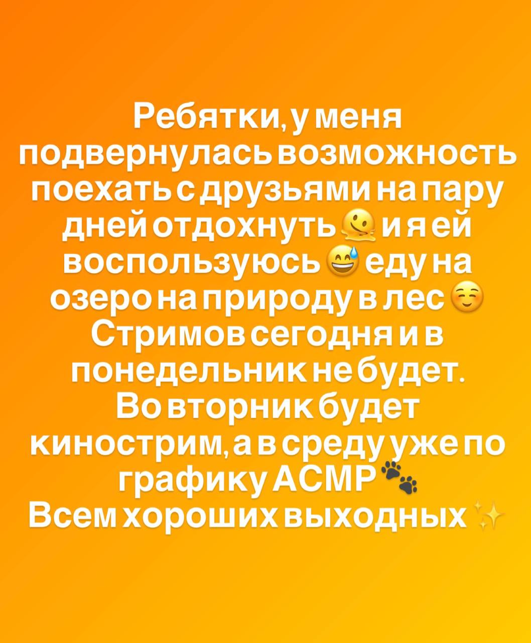 >>206710 у меня для тебя печальные новости, над которыми поржут её телеграмные и новопришедшие, но скорее всего они спят, и это относится ко всем в асмр разделе кто донатит крупные суммы, но они их как-то но отрабатывают, встреча, секс, минет дружба, свадьба. ничего просто так не бывает и не может быть.