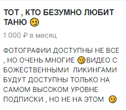 слив от танюхи очевидно поняла что никто не подписывается и решила через двачик заманить анонов но нихуя, за такую цену надо на дилдо садится, чтобы подписалось больше 1 человека