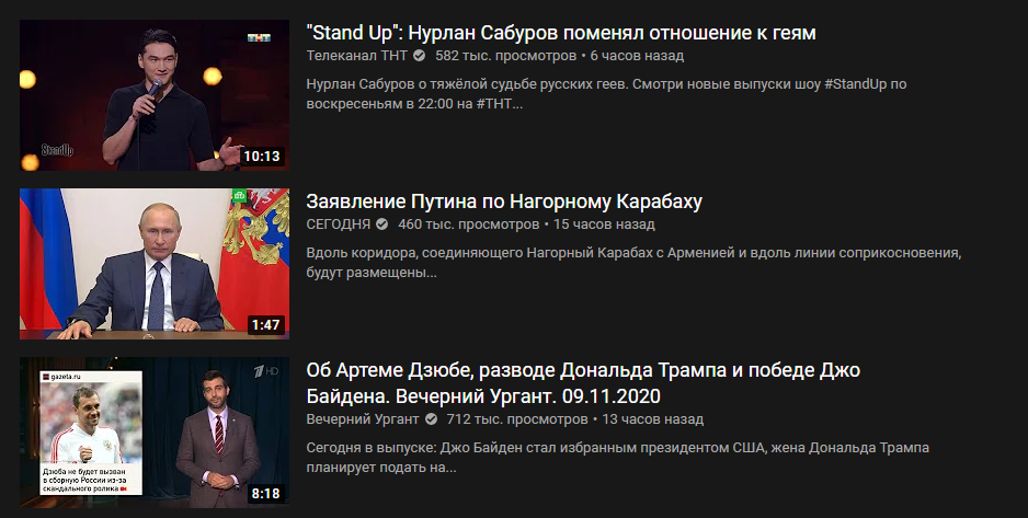 >>58834 Первые три места трендов России. ТНТ/ПУТИН/УРГАНТ Вообще удивляюсь как неТВ форматы пробиваются в топы? Думаю асмр и прочая тематика всё реже и реже будет там.