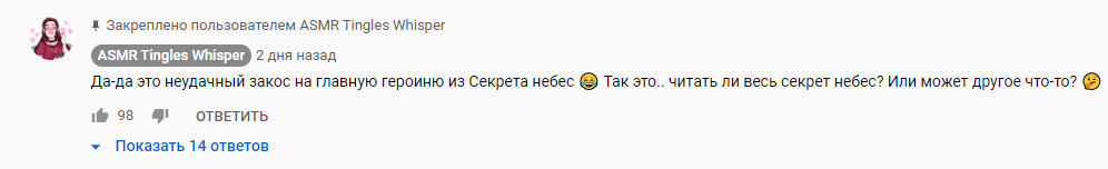 Её идея создать отдельный канал со сказками единственная здравая идея. Потому что основной канал это канал, где основная аудитория это дрочеры. Там она заложница своего прошлого контента. Ютуб всегда негативно воспринимает смену тематики на каналах, а вот создать новый, где ты изначально декларируешь чисто ASMR контент скорей всего положительно воспримет именно ASMR видео.