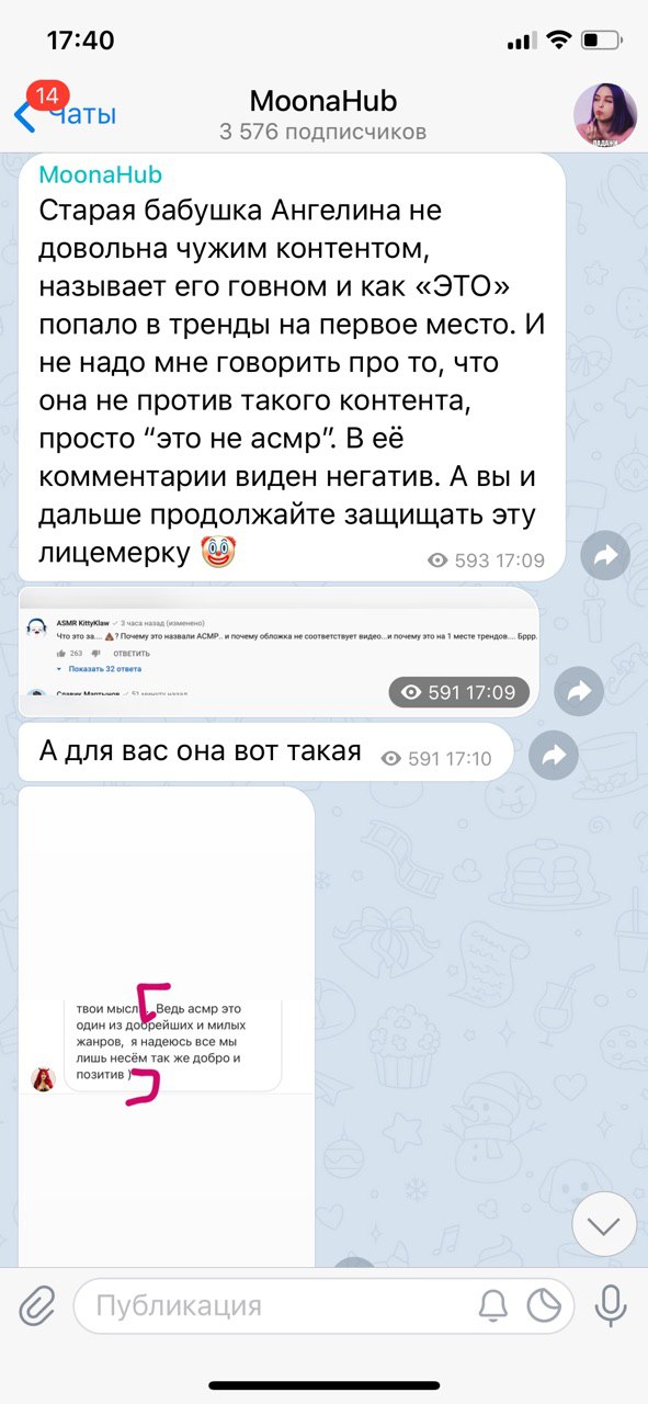 >>58858 >она в одностороннем порядке вещает и не слышит возражений. >А сейчас типа крысит, в своём же открытом телеграме >Муна ей уже и так один раз прилюдно клитором по губам провела, а Китти глазки потупила, сказала: "АСМР это круто" и ушла биться с ветряными мельницами разглагольствовать в сторис