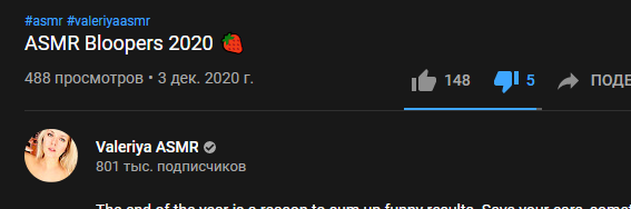 Вчера моему каналу исполнилось 5 лет. Я забыла, моя беда.. Я не знаю, как долго буду продолжать заниматься АСМР, но я благодарна всем за поддержку. Я не планировала отмечать юбилей, потому что теперь понимаю, что мой канал принес мне и много хорошего, и много плохого. Возможно, было даже ошибкой начинать его ... Я не знаю, что будет дальше, но теперь я там, где я есть. Я надеюсь, что мои видео оставили хорошие воспоминания в ваших сердцах ❤ спасибо Пидоры, доведшие её до такого, просто пидоры.