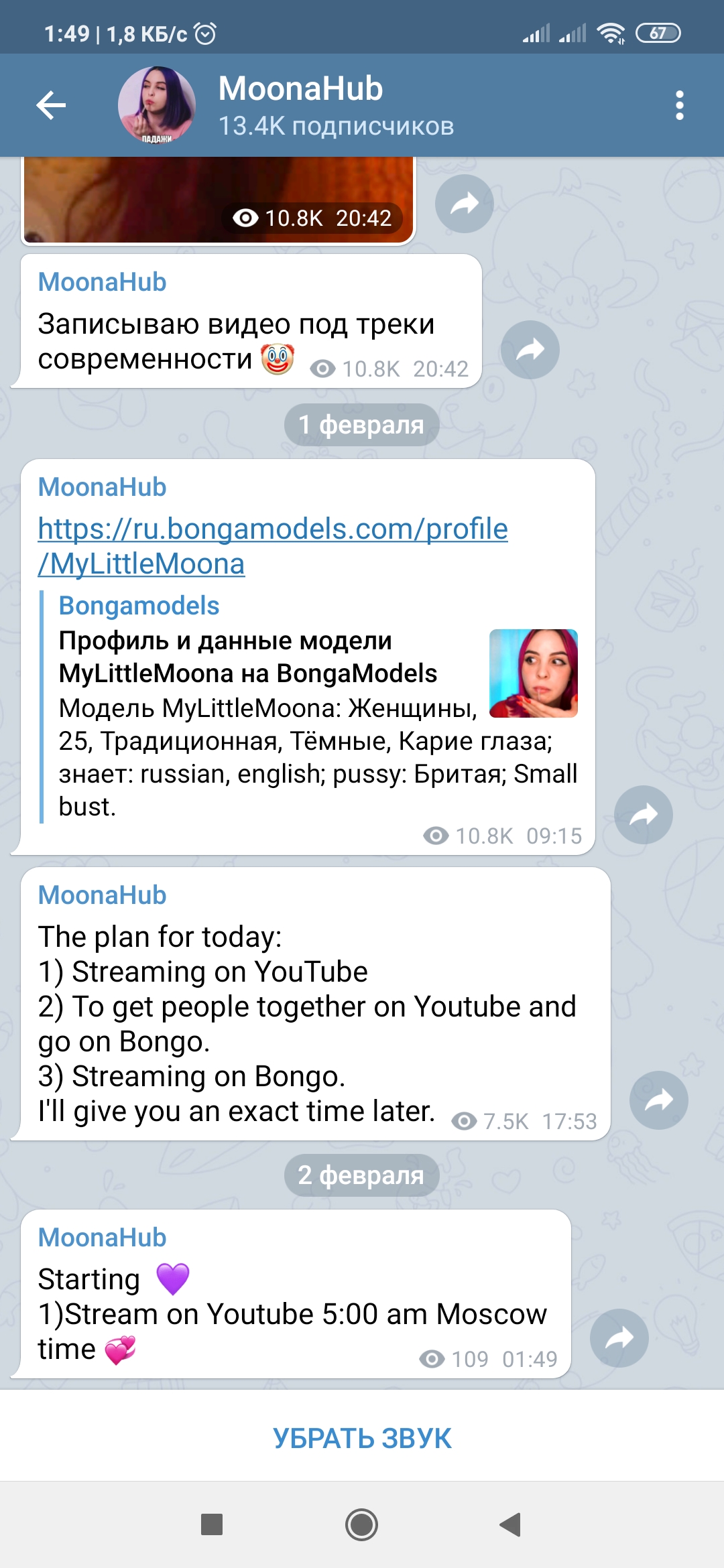 >>65755 я имею виду что в телеге она писала про корону, стрим после нового года, благотворительность. А щас тупо выложила видос и всё. Нет никакой инфы о всем остальном. Вк удалила, в интсе молчит, в телеге тоже молчит