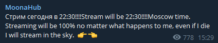 Мун, я обращаюсь к вам от имени ваших абонентов, которые поддержат меня в этом. Неважно, где вы пожертвуете деньги. Если на бонгакамах не будет потока, мы заблокируем ваш канал для вас.