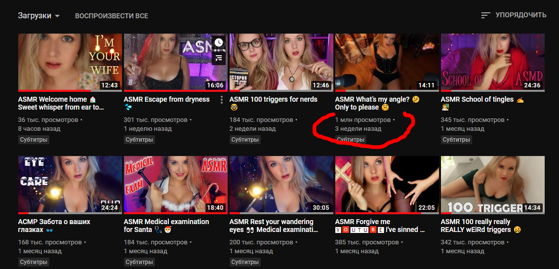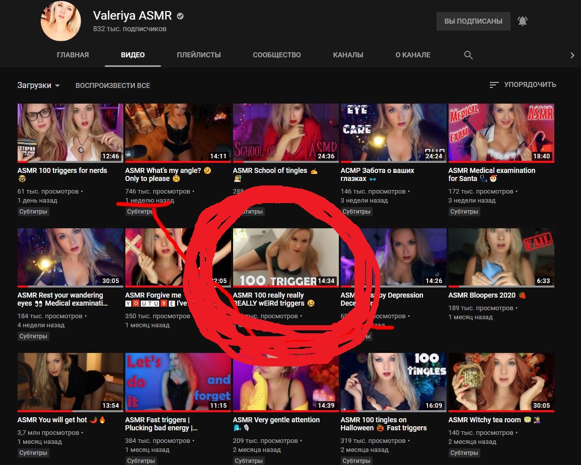 То бля 18+ вешали дважды. А тут просмотры вообще никакие. Кикнули Валерку из поиска похоже. По слову "asmr" ни по дате загрузки ни по релевантности, нет её нового ролика. Вчера не проверял, может его и изначально не было.