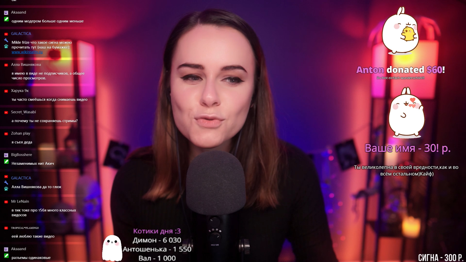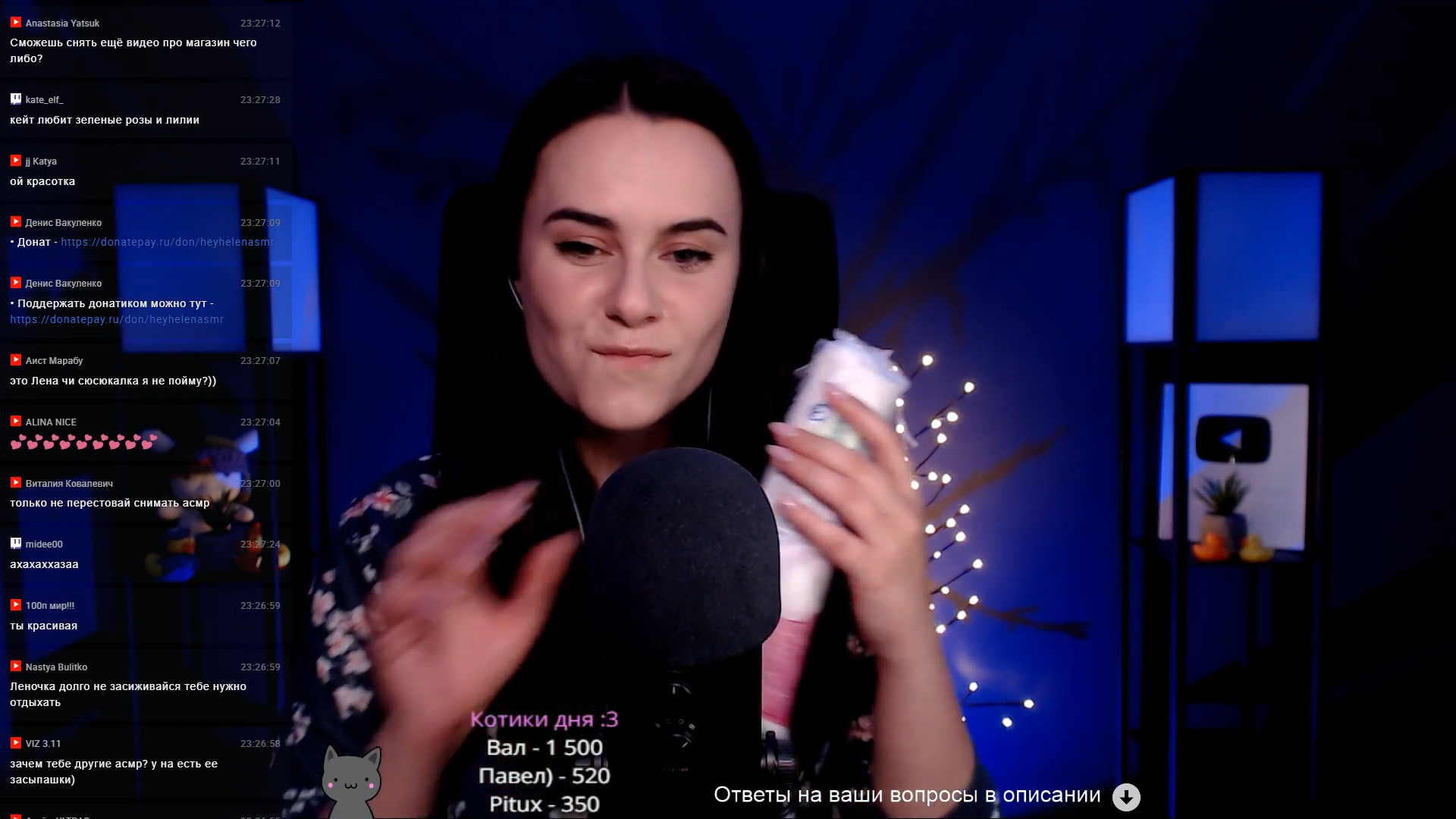 >>69563 Мне кажется Лена не очень хороший человек, несмотря на все её поведение перед камерой. Мне она кажется не очень порядочной. Просто понаблюдаешь за стримами и за её поведением и вообщем и целом и начнешь понимать что это за человек... >>69685 Тоже так думаю. Такая красивая как она не может быть одна. Скорее всего в отношениях с каким-нибудь донатером, а может с богатым папочкой. Но сам факт того что она одинока сводится к нулю практически.