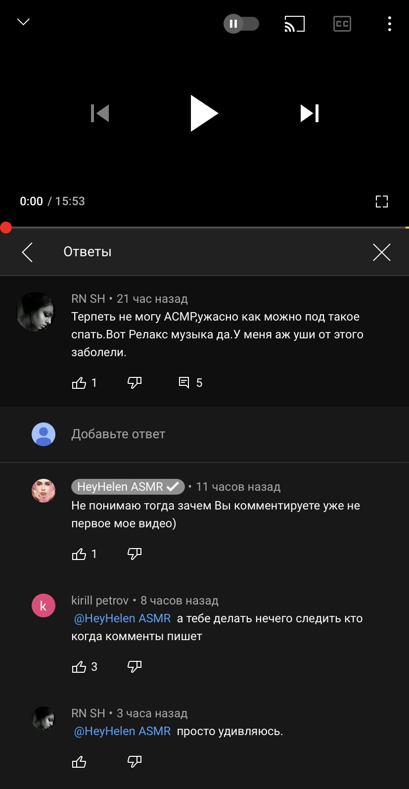 >>76735 Человек написал" терпеть не могу асмр, как можно под такое спать..." так причём тут Ленка не пойму, если ты в принципе не воспринимаешь асмр, то зачем срать в коментах?? Не нравится, не смотри зачем мучить себя