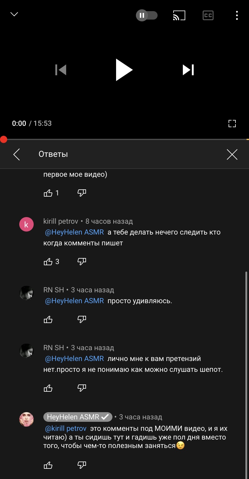 у нее весь асмр заключается в том, чтобы максимально свою рожу в камеру впихнуть и максимально близко и томно шептать в микрофон. нахер мне это? я хочу нормальное асмр, а не чтобы какая то баба пыталась в эротику играть