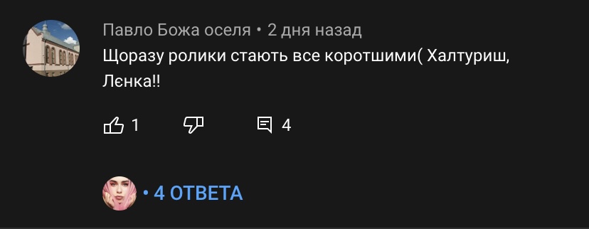 >>76240 если б не ты со своим: "нахуй", вобще б не смотрел. Полистал. Ну в принципе как я и думал. Жопа с новым видосом. Я думаю уведомления не только мне не пришли. Если б не ее стримы которые хоть как то подстегивают просмотры, думаю у половины видосов просмотры были бы еще хуже. Мне уже даже уведомления о стримах не приходят с ютуба от нее, только с твича. Короче какая-то хрень с её каналом и она искренне не понимает что за хуйня. Расстроеная она была из-за жопы с видосом, хотела раньше закончить стрим. Но котики заболтали её и отвлекли от негатива, она хоть повеселела. Вот и поблагодарила всех что её отвлекли общением.