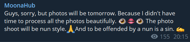 Ребят, извините, но фото будут завтра. Потому что не успела красиво обработать все фото. Фотосессия будет в стиле монахини. И обидеться на монахиню - грех. ✍️