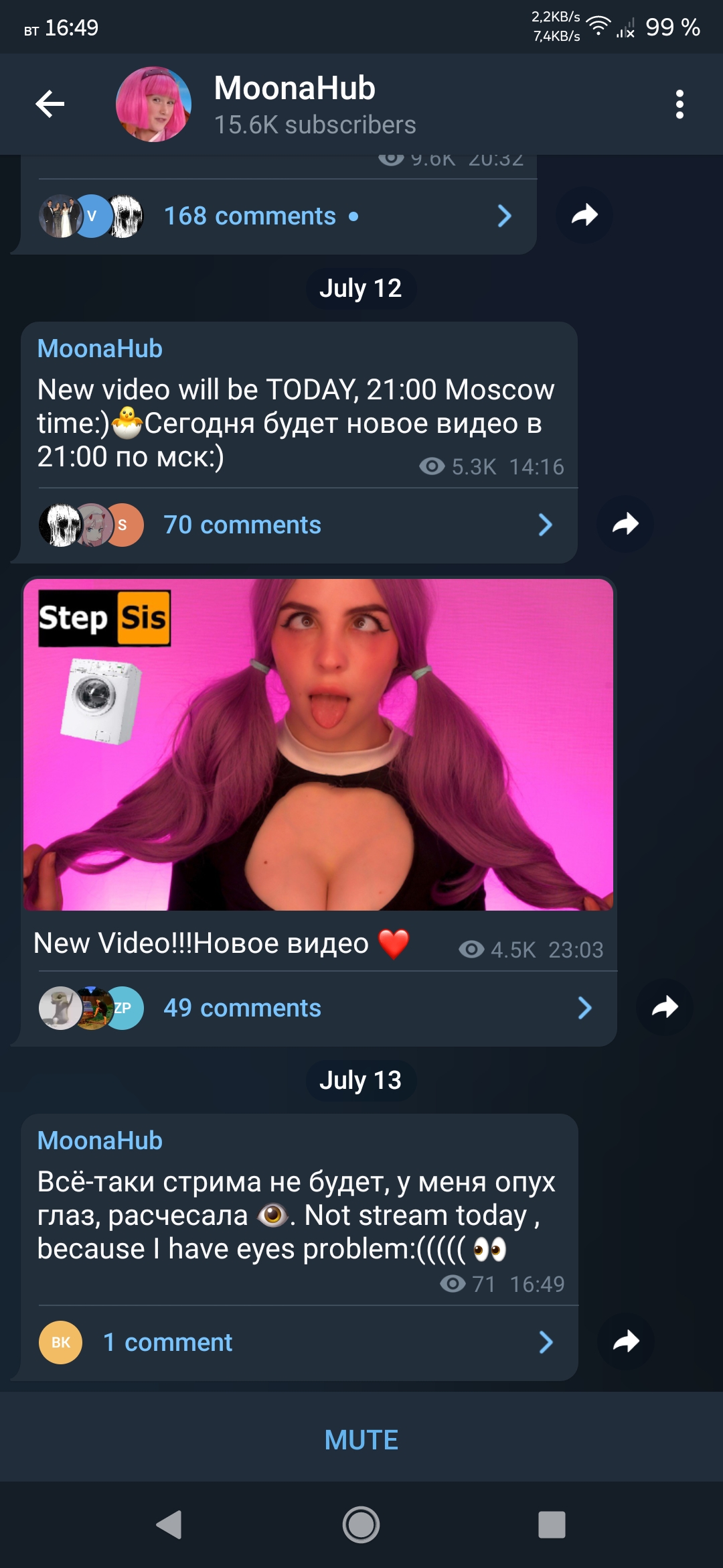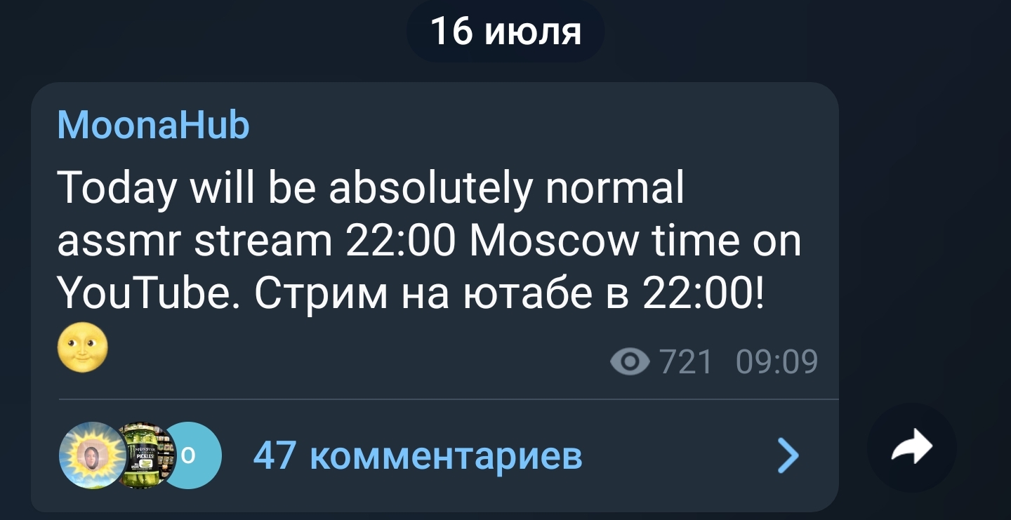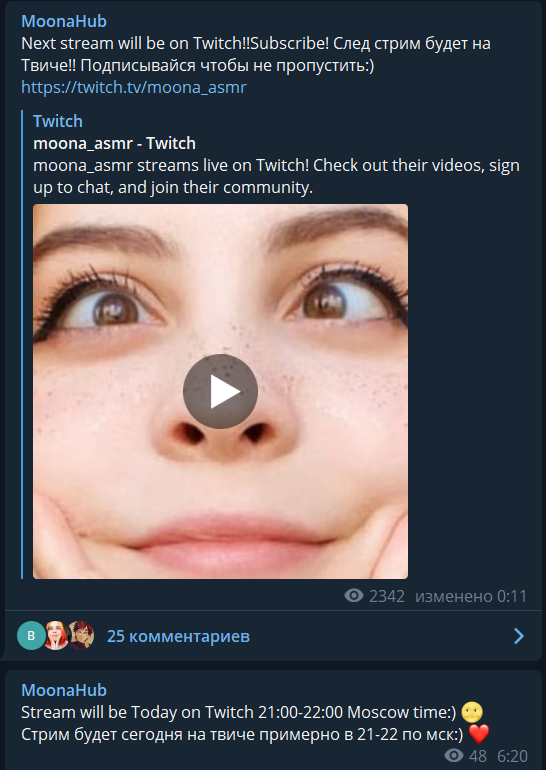 Единственный случай, когда ей можно верить, это если она пишет за час или полчаса до стрима, что щас заведу, а когда за день или за несколько часов это всегда наёб, либо перенос.