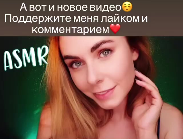 в каждом видео: близкое ебало в экран и тап тап тап ноготочки тяп тяп тап ноготочки плям плям плям показала что рот слюнявый, губехи показала, в ухо томно подышала и все видос готов. как будто каждый вечер будуарно укладывает своего мужика спать, эти заигрывания и флирт с зрителем. заебала.