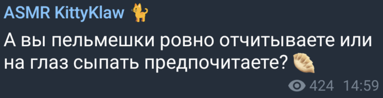 >>87074 Дуров блять, почему так сложно было запилить нормальный способ поделиться ссылкой на канал. И как найти эту телегу по поиску АСМР разумеется не находит.