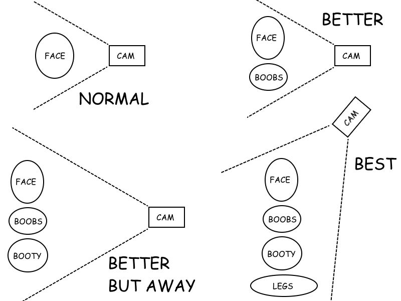 Меньше всего набирают просмотры где камера расположена на уровне лица, при том что такой формат является самым распространённым и возможно поэтому приелся аудитории. Если на такой превью нет презервативов, ахегао или ещё чего-то интересного, то можно предсказать, что видео ждёт провал по просмотрам.