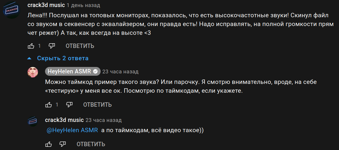 >>88976 >Кстати, я не припомню такого видео у неё на канале, или было? Если там будут звуки карандаша по бумаге или звук самой бумаги, то такое было. Очень старый видос: https://youtu.be/WL8RR9OYoNY