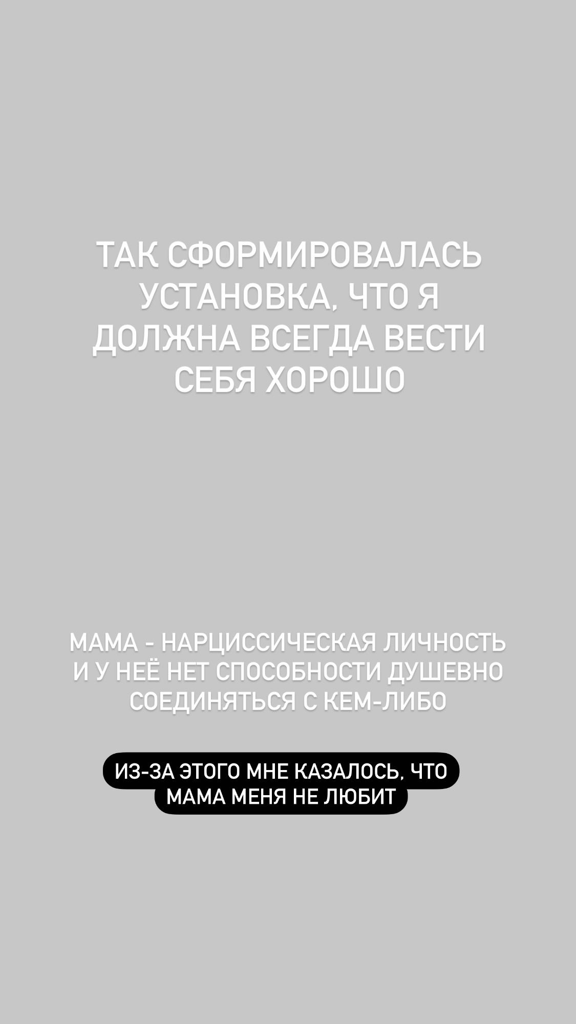 Но для мамы, если и быть матерью, то только идеальной по ее мнению. Она нарисовала в своей голове картинку, какой идеальной она должна быть и какой идеальной дочерью я должна быть, и начала воплощать все это в жизнь. Так ведут себя #мамы-нарциссы. Еще есть вариант, когда #нарцисс-родитель полностью отстранен и не замечает ребенка. Так что мне еще повезло.