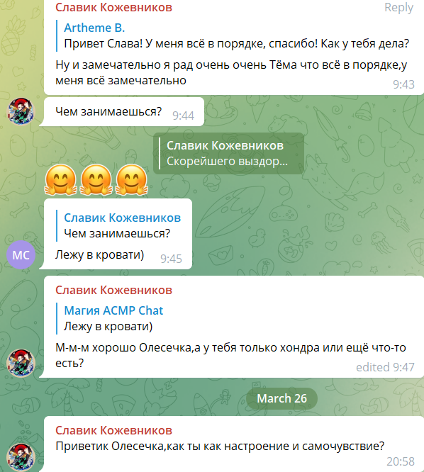 >>129992 >мне пришлось заботиться о больном сыне, совмещать заботу о нем с какими-то своими делами, мне было так тяжело ПРИШЛОСЬ, КАРЛ! я хуею. Пришлось. Пацан заболел, но мамке не до него, у нее психология, консультации, а тут еще и ему стакан воды подать, и от этого у Леси случился "моральный кризис", о чем она своевременно и доложила подписечникам. Кто там про маму-абьюзивную тираншу недавно истерил? А, Лесь? Или "итадругое"?