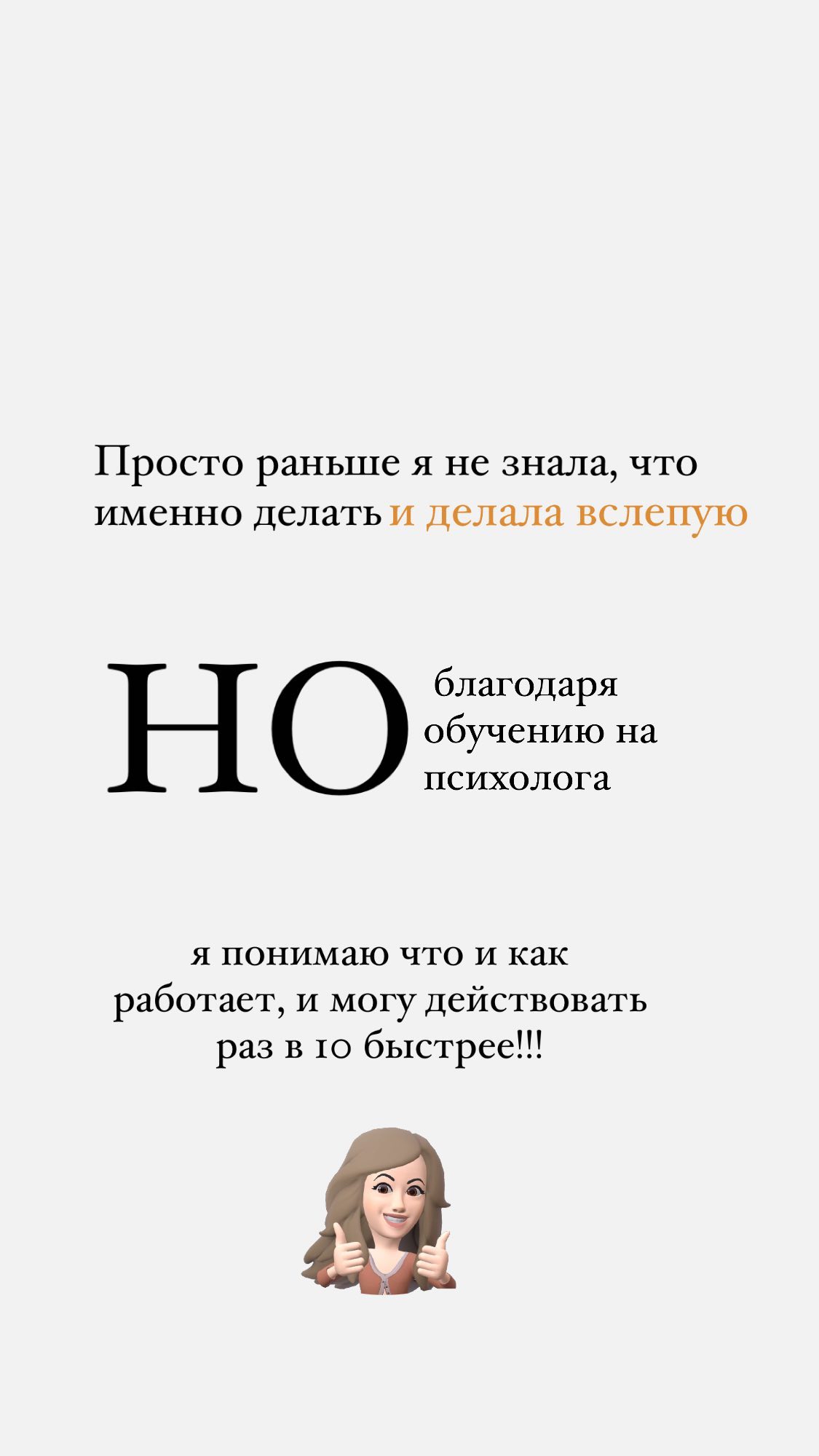 И может быть спустя время(годы) ситуация как-то изменится и мое отношение к работе психолога тоже, но сейчас я хочу наслаждаться этой работой, развиваться в этом направлении, учиться и… и… и пора бы уже мне научиться лаконично завершать тексты и свои мысли, но пока что так🤭