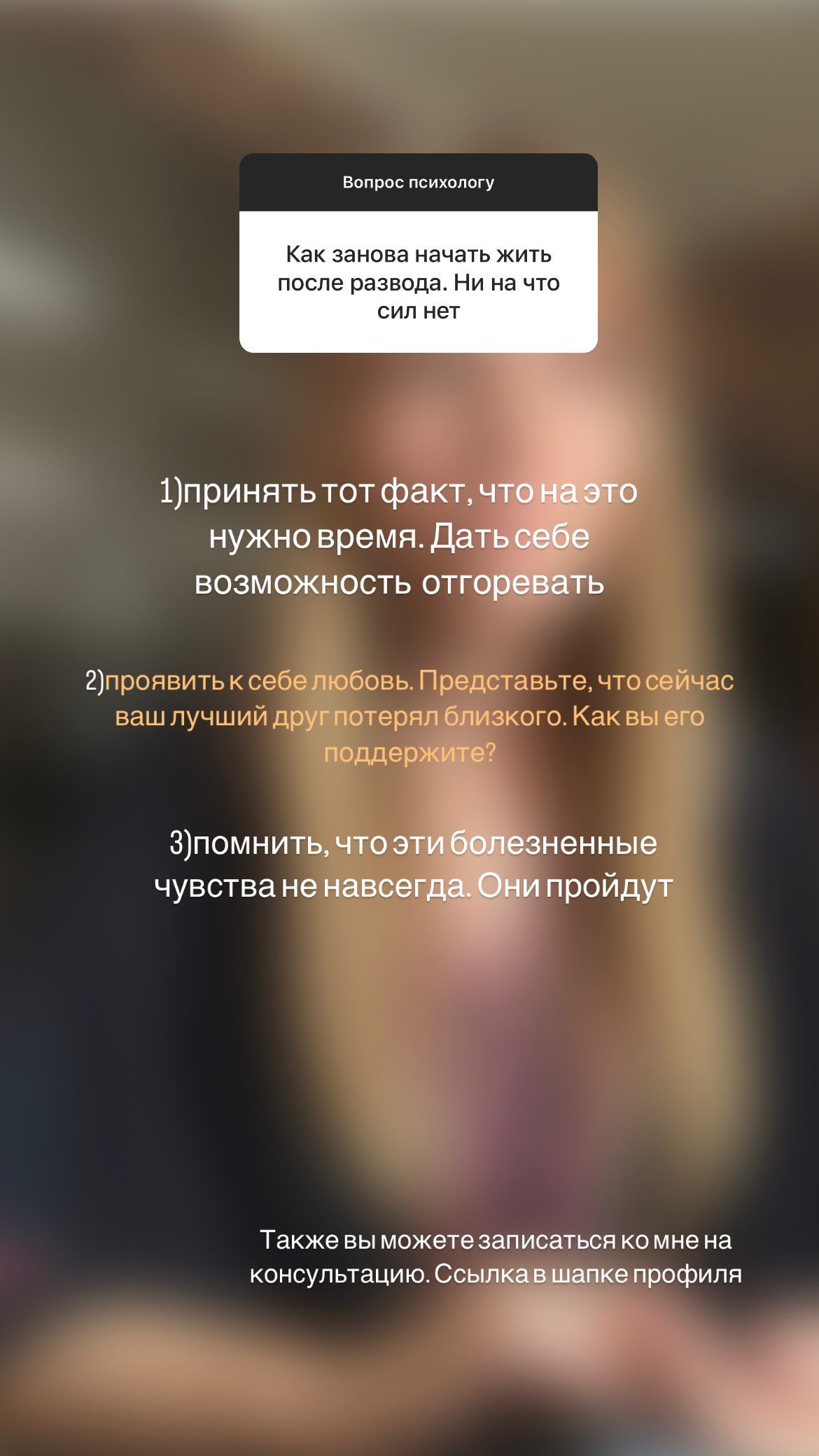 После личной терапии я перестала вспоминать это событие, а если и вспоминаю, как например сейчас, чтобы написать этот пост, то без душевных терзаний. Меня больше это не огорчает. Тот случай перестал быть для меня травмирующим, теперь это прост о опыт.