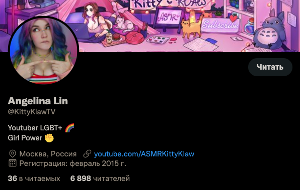 >>96183 Приколитесь, на тот момент у Танюхи 1,6к подписоты блять, и Китька приходит к ней гореть в коммах, а потом еще мутит отдельный стрим, чтобы ее потопить. Канал в 1,6к! Не смотрит она других авторов блять. Да она в каждую дырку в заборе смотрит, где асмр написано.