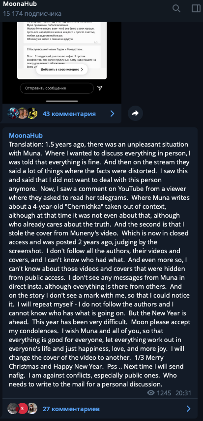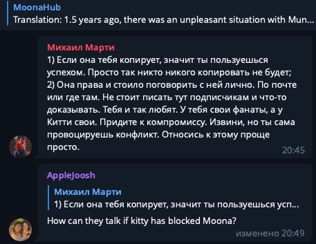 Китьке надо было с самого начала нормально извиниться перед Танюхой Мельсон, а не на отъебись, когда Мунка уже приперла ее к стенке во время стрима. Надо было перестать так откровенно продолжать пиздить идеи у Мунки, Валерки и всех блять вокруг. Надо было перестать пытаться утопить конкуренток и мечтать остаться единственной и неповторимой на ютубе. И даже сейчас не надо было врать в своей сторис про то, что "ой я только сейчас узнала про скандал", когда коммы в телеге она закрыла с самого утра. Не надо было с нихуя упоминать отца муны, то ли чтобы вызвать жалость, то ли чтобы еще раз надавить на больное. Она сама врет и делает кучу ошибок тем самым топит себя.