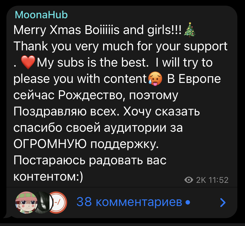 Merry Xmas Boiiiiis and girls!!!Thank you very much for your support . My subs is the best. I will try to please you with contentВ Европе сейчас Рождество, поэтому Поздравляю всех. Хочу сказать спасибо своей аудитории за ОГРОМНУЮ поддержку. Постараюсь радовать вас контентом:)