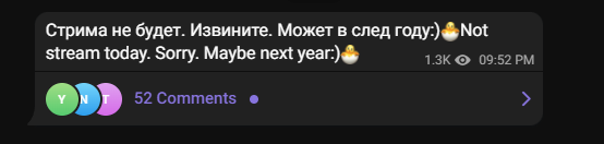 И спустя 3 часа и 26 >Not stream today, sorry