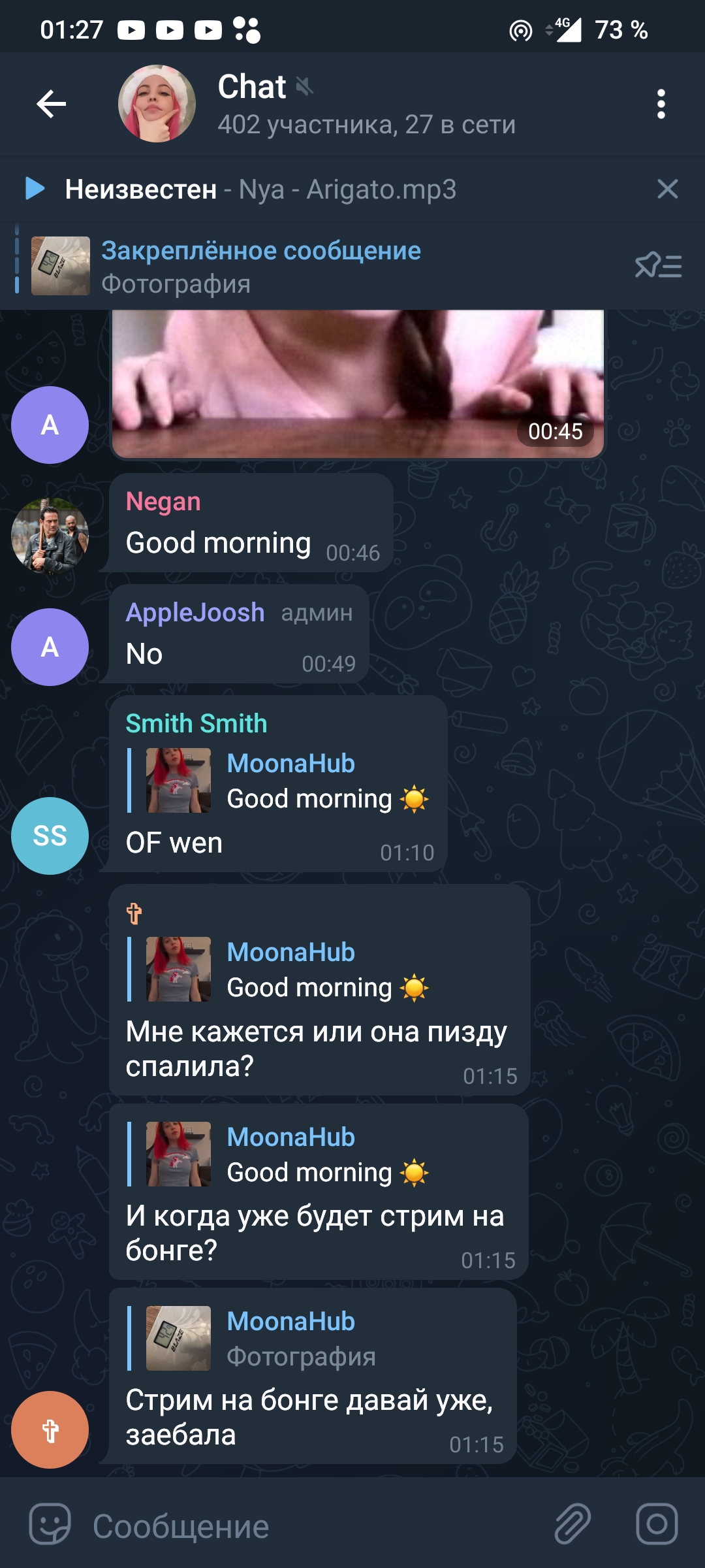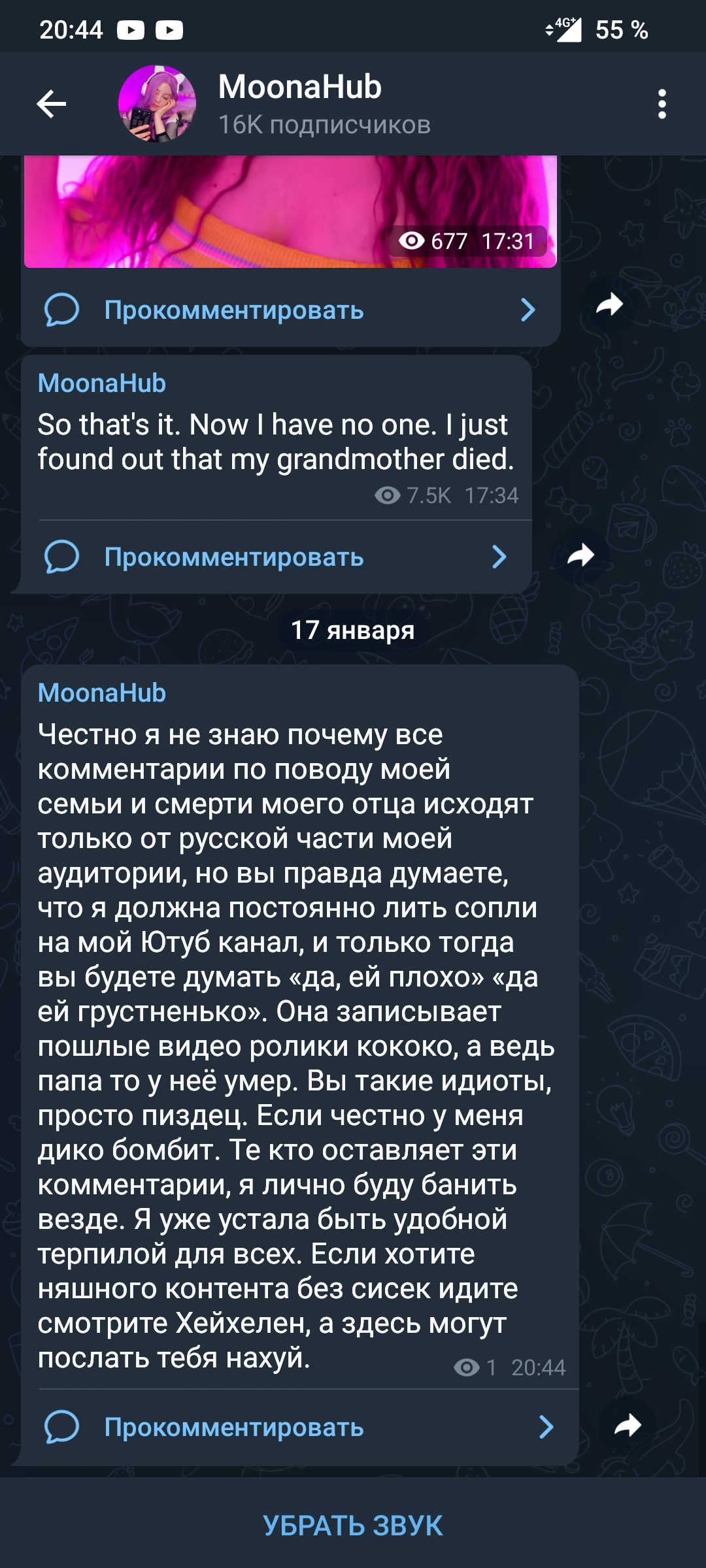 Вкатываюсь. Что эта шлюха Муна себе позволяет? С какого это хера Кити из-за неё сменила обложку? Пусть тогда Муна свой канал удалит. Это просто пиздец.