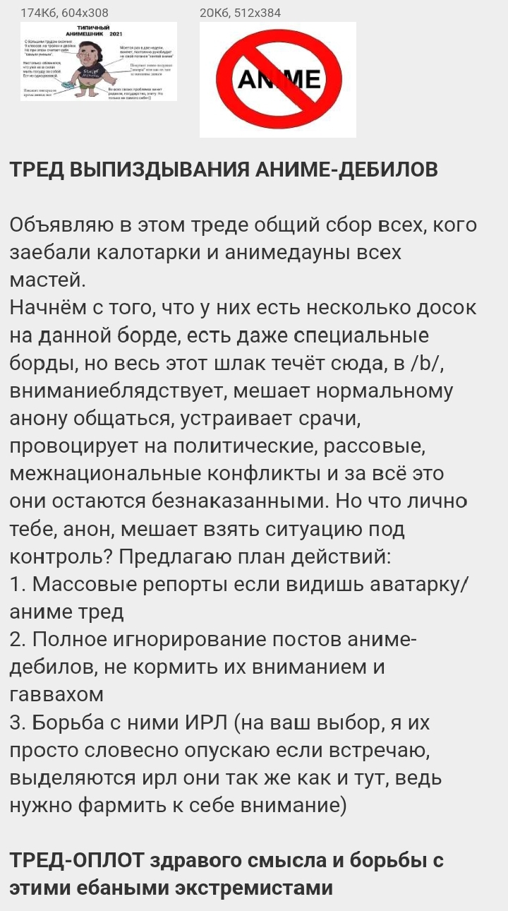кек, норминяша приходит в чужой монастырь и диктует свои правила, и будьте уверены что они и анимешников выпизднут, они и так почти всех выпизднули. я хоть сам анимедаунов не люблю но никогда не репортил их, да и вообще никого не репортил почти никогда, если только нормипетухов. а потом они же ноют что двач няша и нихуя интересного нет нормигной нужно давить. нормигной нужно смывать.