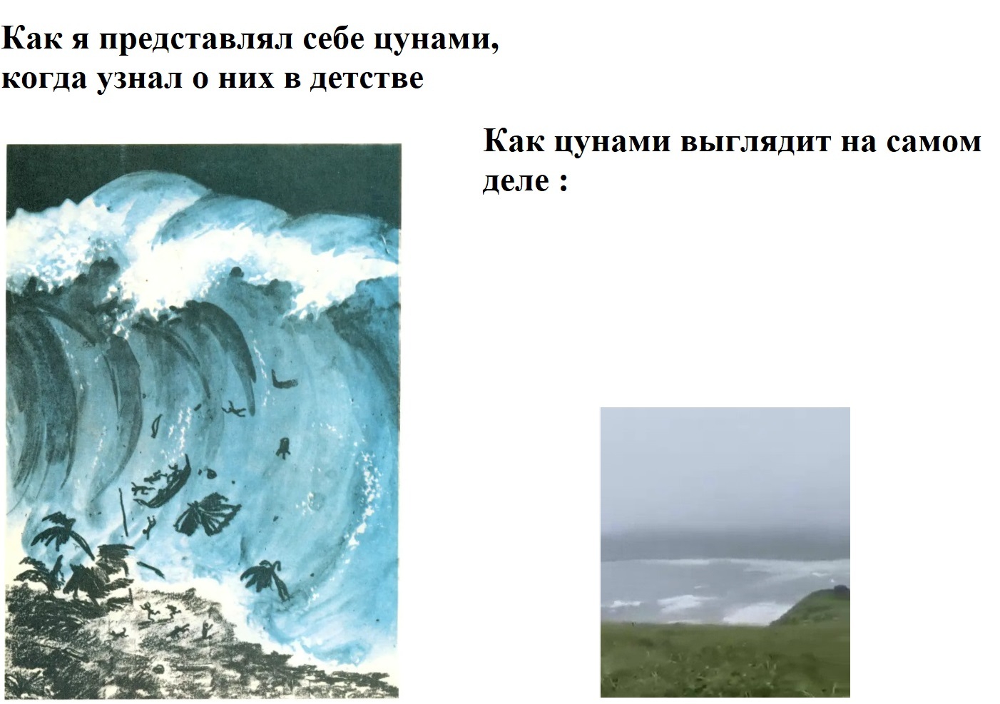 >Суть цунами не в высоте волны, а в ее длине, то есть огромную массу воды непрерывно гонит на берег. Это хорошо видно в кадрах японского цунами 2011 года: волна выливающиеся на берег высотой где-то в метр, но она не останавливается и нагоном может подняться до большой высоты.