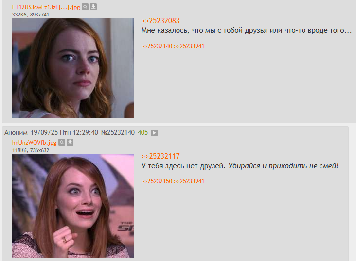>>3971925 Ааааааа. Так если тебя волнует только знаменитостей тред, то иди туда. Можешь аватарку надеть - так тебя будут охотнее слушать. И вот вас будет уже трое, плюс Эльза на подсосе иногда что-то вякает. Круто же? Будете набивать счётчик постов, спрашивая я и ктооооооооооооооооооо?