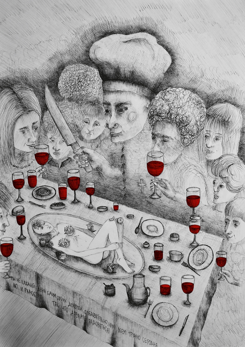 Ещё помню давно было, может это сонный паралич такой необычный. Я лежу и вижу как люди надо мной мужчины и женщина, все такие карикатурные, может там ещё бабка была. их человек восемь, в каких-то бежевых тонах как на пике, вокруг них темнота, ночь же. В викторианских костюмах, шляпах,моноклях делят очень большую висящую тушу няшаьи как на втором пике. Долго спорят, а потом всë пропадает и меня сильная паника накрывает, только через пол часа успокоился.