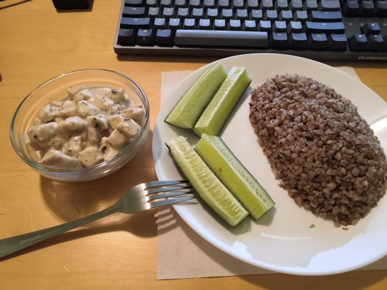 >сухая гречка Я, кстати, даже масло в неё чёт не кладу, хз. Привык такую есть.