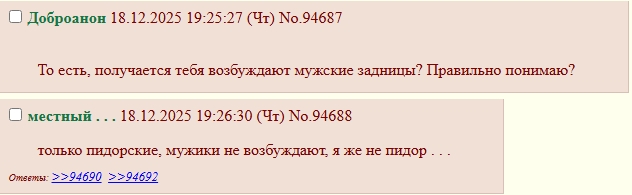 >>3992101 >Какой неожиданный пируэт. Решил не затягивать и совместить визит в асулим с продолжением нашего разговора или подумал, что тема становится слишком уж неудобной для фага? Это не моя прихоть, просто там я забанен. >Ну все же ради ответа Лиллису тебе придется вернуться. Уже не придется. Нравится ему или нет, но мне пришлось нести ответ прямо к нему домой, почти что в постель. >С высокой долей вероятности во всех разделах работает один и тот же человек. Помнишь, как недавно везде висели объявления о наборе модераторов? Набирали именно по доскам: кто куда хочет, тот туда и идет модерировать. К тому же, в неспокойные времена неудобные постеры были выдавлены только из fag, но не из b. Это о чем-то говорит. >Ты эра что ли подозреваешь? Я не подозреваю, для меня это факт уже много лет! >Дело в том, что он слишком часто мажет, пытаясь сдетектить меня среди безаватарочных. Я думаю, он может специально так делать. Он может так развлекаться. Или пытается приписать тебе что-то, чтобы чего-то добиться. >Не переоцениваешь ли ты габариты своей жопки Очень даже хороший размер, доставляющий эстетическое удовольствие изящной утонченностью и возбуждающий аппетит избытком сладкой мякоти. И вообще, главное это не размер, а правильная подача... >сахарок ovo Похоже, что от того сахарка остались липкие следы в твоей памяти. Чем он так знаменит? >А ты когда рассказывал о том, как любишь заходить на архивач и вспоминать "старые-добрые деньки", то какие годы имел в виду? Во-первых, период с 20 по 22 год. Как раз то время, когда хмыри с селебами для меня начали превращаться в Евочек и Эммочек. Во-вторых, времена мультифагготрии, с которых прослеживаются кое-чьи следы. >У олдов она всегда была толстой. А вот условные "новые" аватарки все как-то порассосались. Олдфаги - победители естественного отбора, на практике доказывающие тараканью жизнеспособность. Но только чего ради поддерживать такую спартанскую атмосферу, от которой бегут люди? >Полуаватарка-полуаноним (и вообще урожденный лягушонок), в его венах течет токс и он может выживать даже при сильнейшем давлении. Да не такое уж и давление, а скорее фоновые попытки подколоть и топорные оскорбления от безаватарочных может быть, он сам это и делает. >Ммм, не знаю. В том-то и дело, что его почерк очень узнаваем и лично я мало у кого наблюдаю похожий (причем кроме Глазуна могу выделить еще только одного анончика с характерным стилем). Хотя это скорей не столько почерк, сколько повадки: если пытается завладеть инициативой, грубоват, нетерпелив, плохо идет на компромиссы, стремится действовать за тебя (что довольно забавно контрастирует с его нелюбовью к тем, кто ведет себя аналогично), склонен за один вирт по нескольку раз менять позы и формы секса и отличается страстью к объятьям и любовью к совместному отдыху в кровати - то скорей всего перед тобой именно Глазун. Это 99% всех актов вирта, кроме особенного формата "девочка+девочка". Не может же это все быть делом рук одного всеядного и ненасытного человека, круглосуточно охотящегося сразу за всеми персонажами и как будто даже не имеющего предпочтений во внешности аватарки и характере постера. Иначе это какой-то странный и бессмысленный спорт, а не удовлетворение личных хотелок и фетишей. Глазун-то вроде не такой кукушонок для подобных занятий. >Ты так называешь... ссору между Боксером и Эром